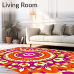 Ultra Soft Area Rug, Non Slip, Stain Resistant, Washable Area Rugs for Living Room, Bedroom, Celestial Garden Bloom Radiant Medallion Artisan Crafted(Orange) Overview: