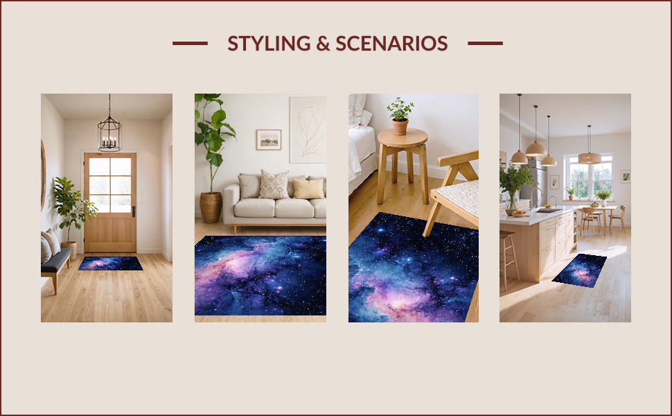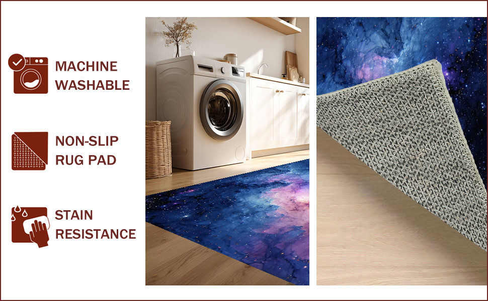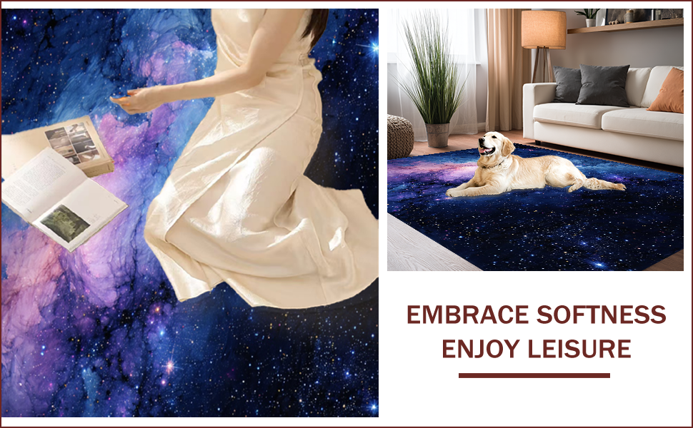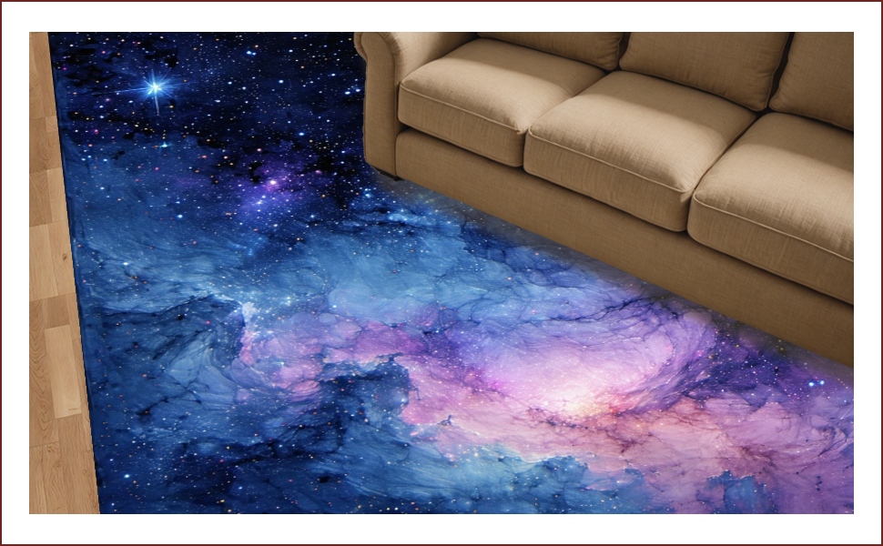 Ultra Soft Area Rug, Non Slip, Stain Resistant, Washable Area Rugs for Living Room, Bedroom, Celestial Glittering Nightscape Motif(Blue) Overview: