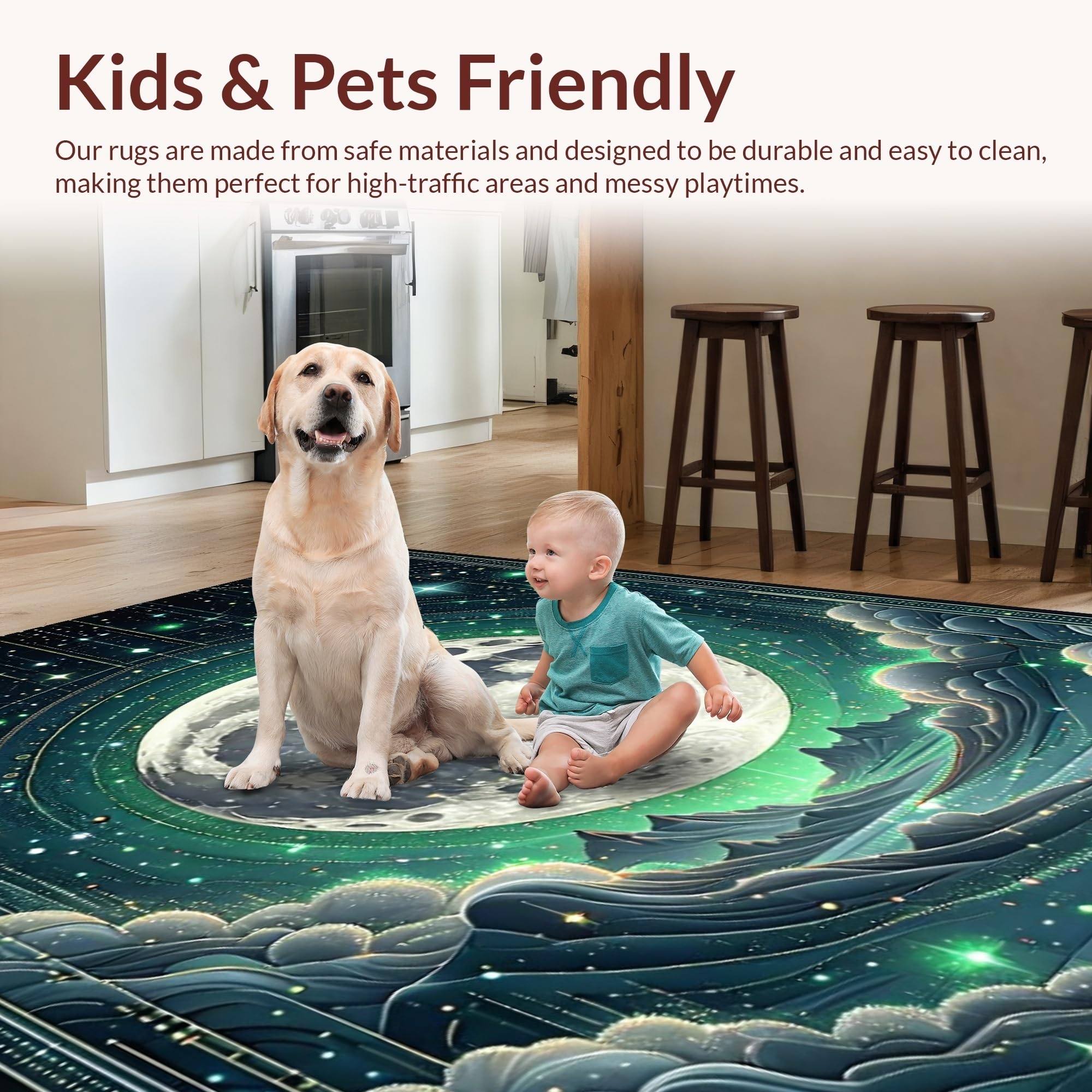 Ultra Soft Area Rug, Non Slip, Stain Resistant, Washable Area Rugs for Living Room, Bedroom, Celestial Grey Star Motif(Gray) Overview: