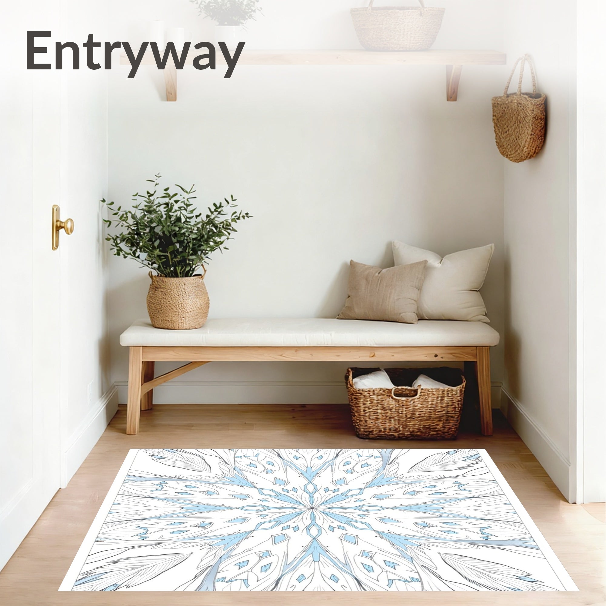 Ultra Soft Area Rug, Non Slip, Stain Resistant, Washable Area Rugs for Living Room, Bedroom, Celestial Ice Crystal Medallion with Radiant Snowburst Design(White) Overview: