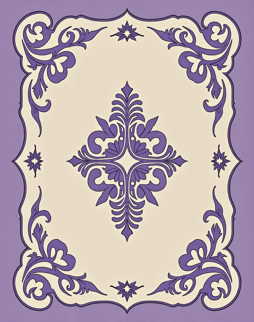 Celestial Medallion Motif with Botanical Scrollwork Accents(Purple)