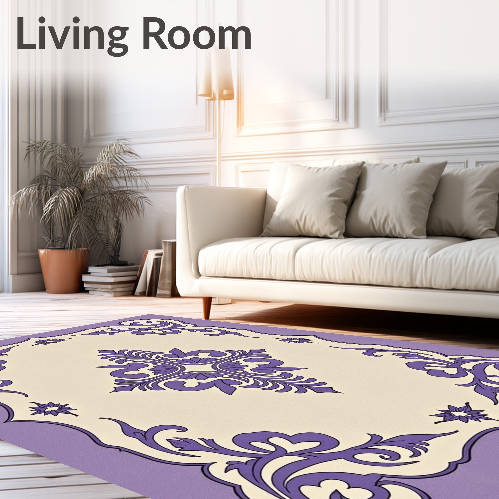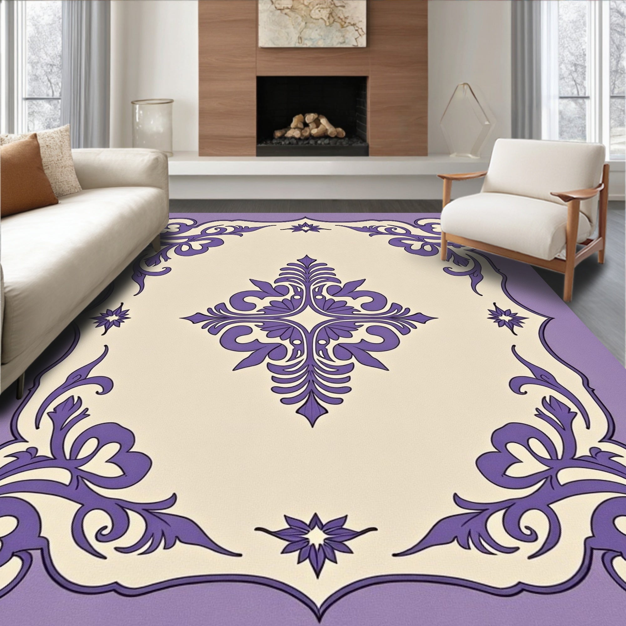 Ultra Soft Area Rug, Non Slip, Stain Resistant, Washable Area Rugs for Living Room, Bedroom, Celestial Medallion Motif with Botanical Scrollwork Accents(Purple) Overview: