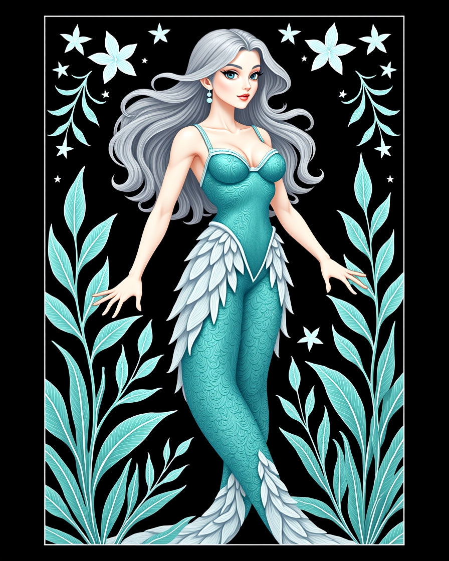 Celestial Mermaid Lagoon with Whimsical Sea Flora(Black)
