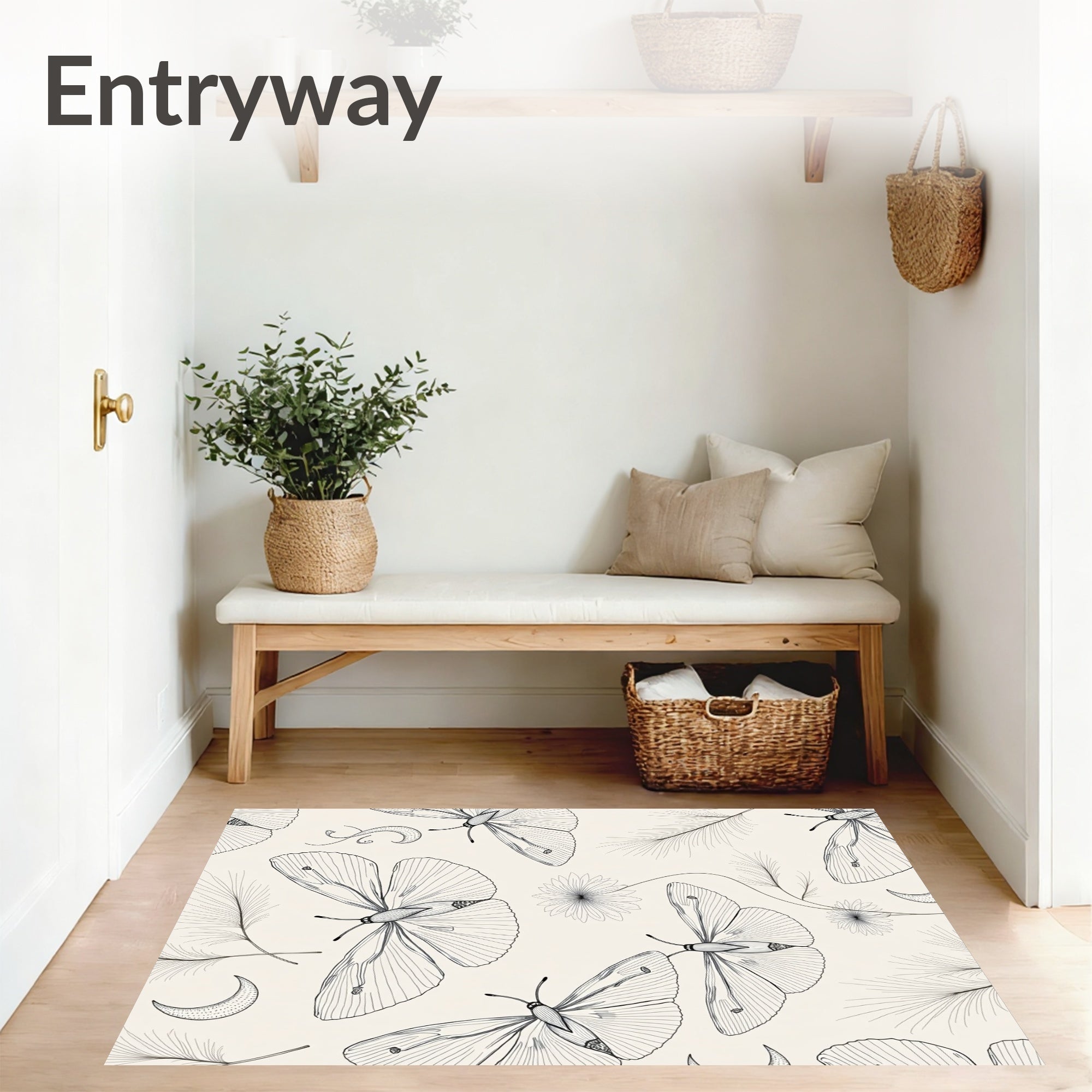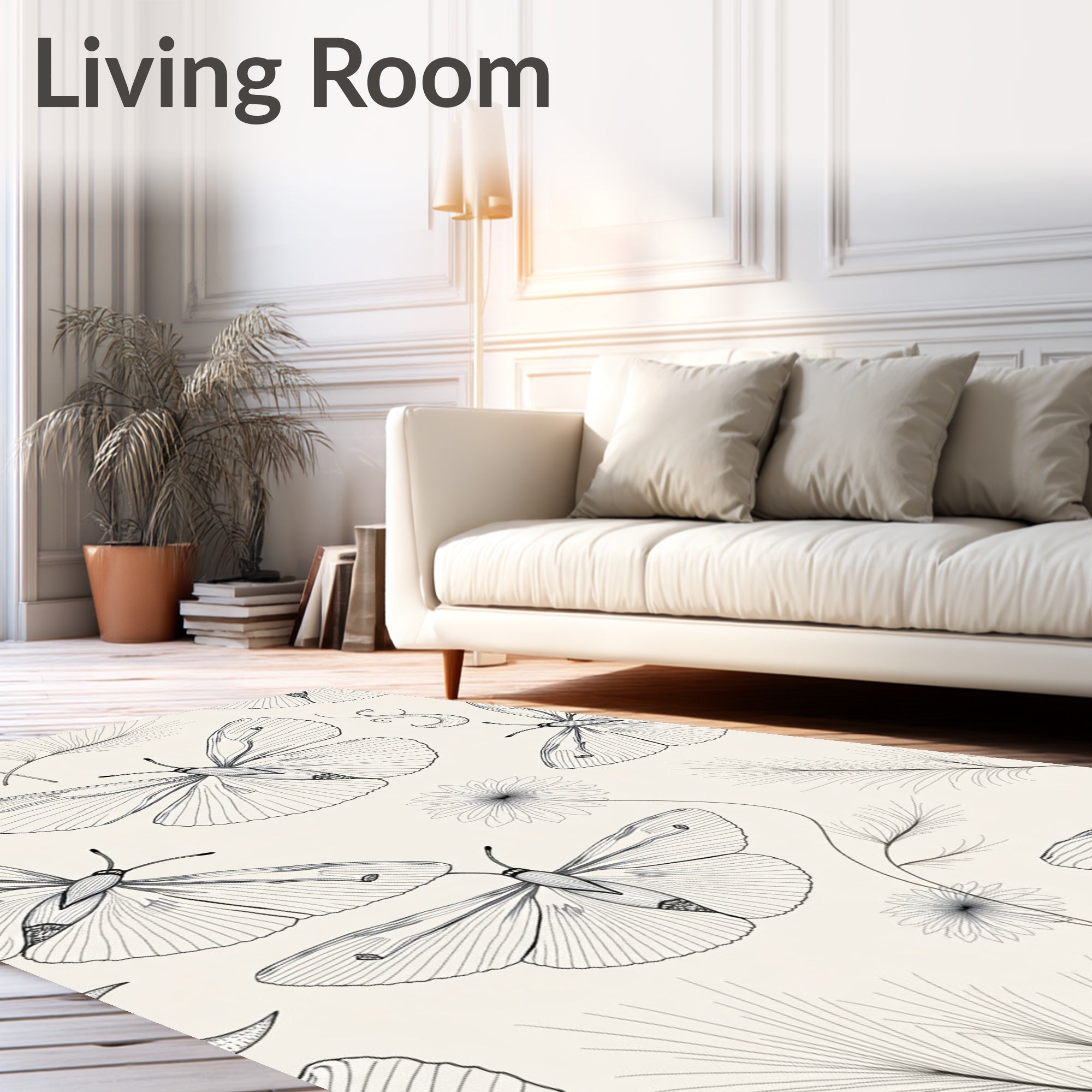 Ultra Soft Area Rug, Non Slip, Stain Resistant, Washable Area Rugs for Living Room, Bedroom, Celestial Moth Wings with Moon Phase(Ivory) Overview: