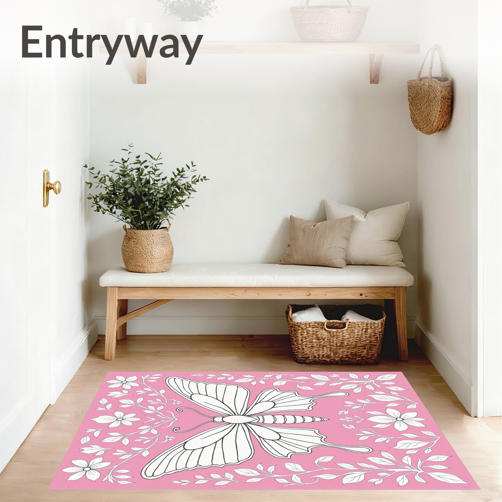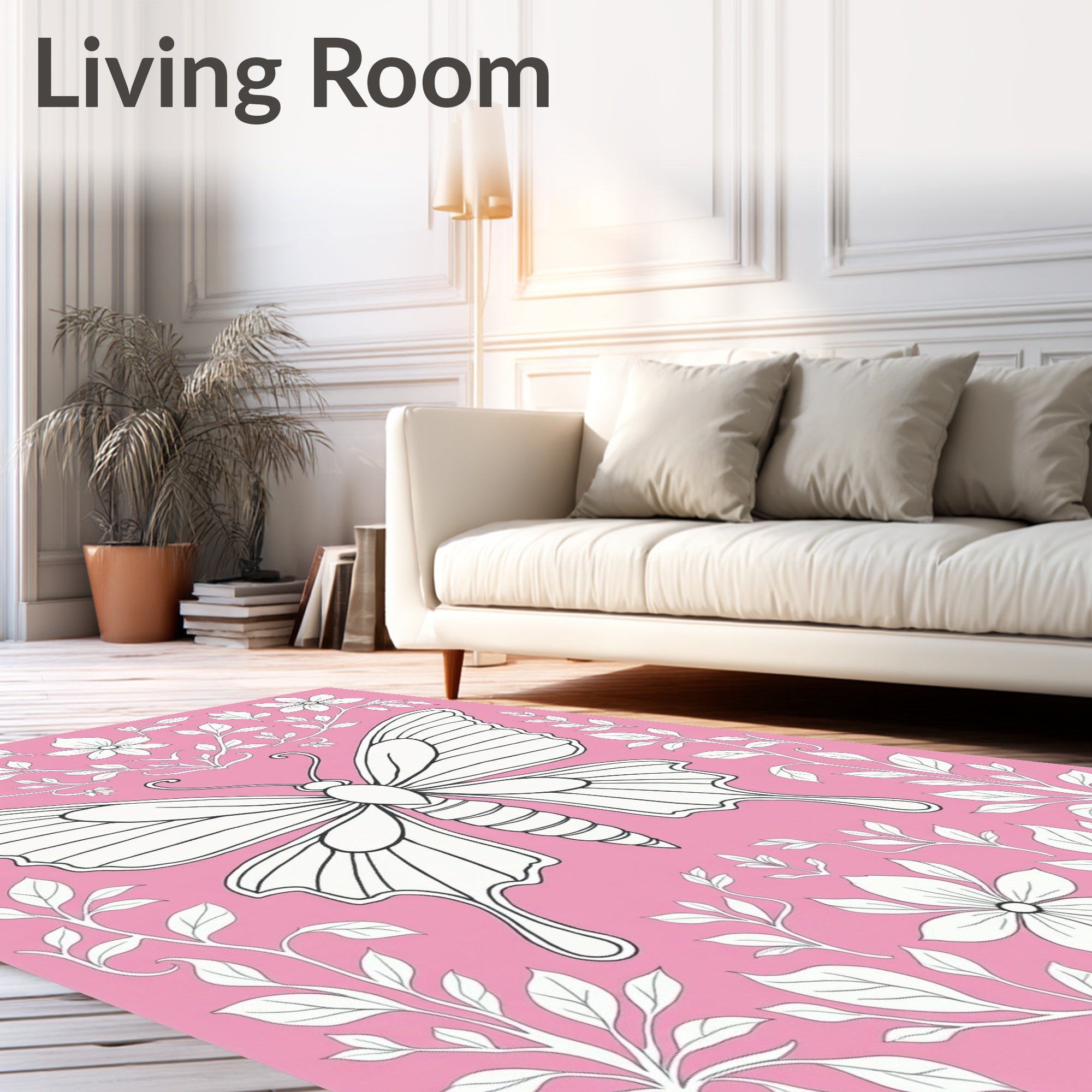 Ultra Soft Area Rug, Non Slip, Stain Resistant, Washable Area Rugs for Living Room, Bedroom, Celestial Moth with Delicate Poppy Embellishments(Pink) Overview: