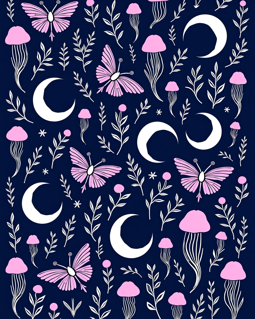 Celestial Moth with Mystical Mushroom Constellation Area(Pink)