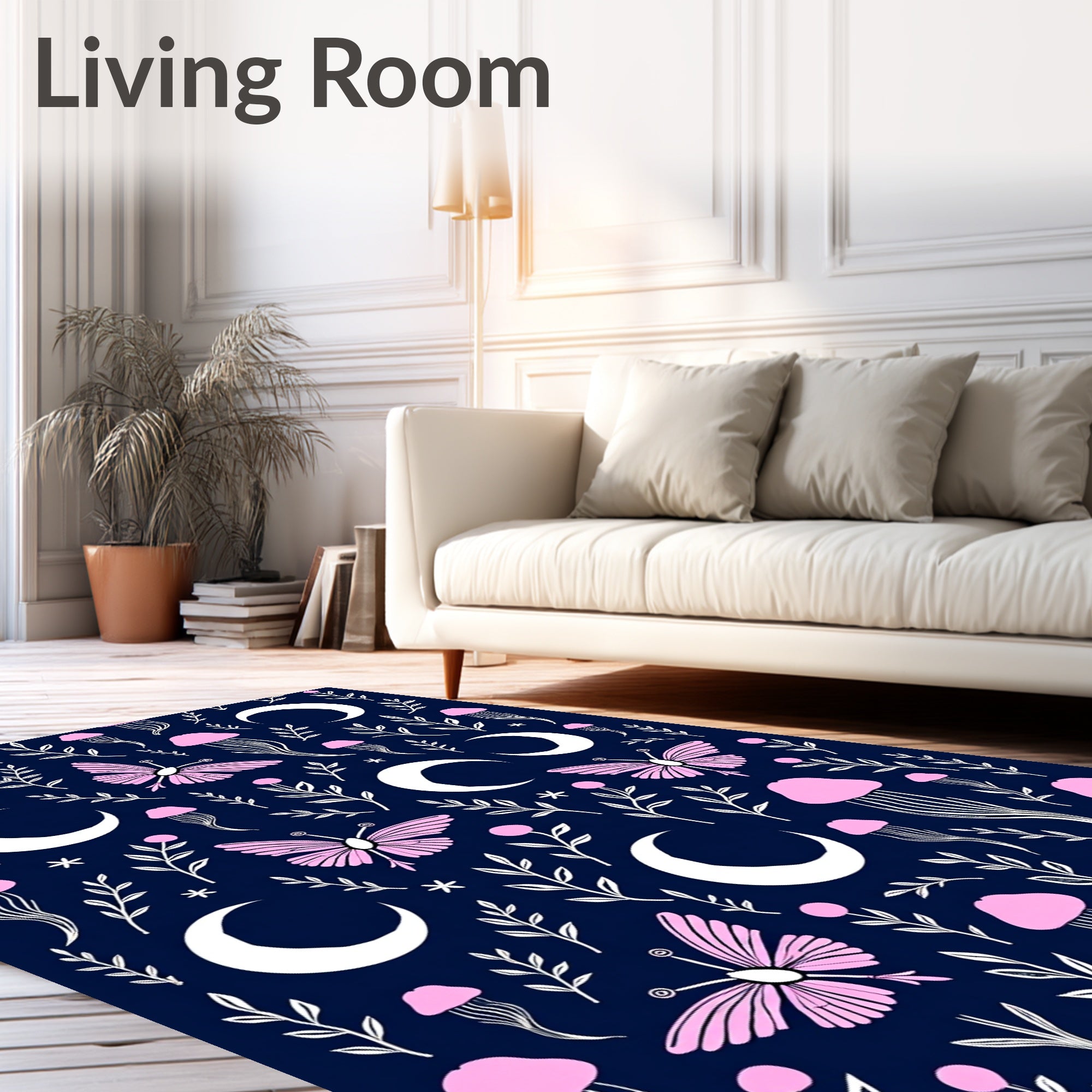 Ultra Soft Area Rug, Non Slip, Stain Resistant, Washable Area Rugs for Living Room, Bedroom, Celestial Moth with Mystical Mushroom Constellation Area(Pink) Overview:
