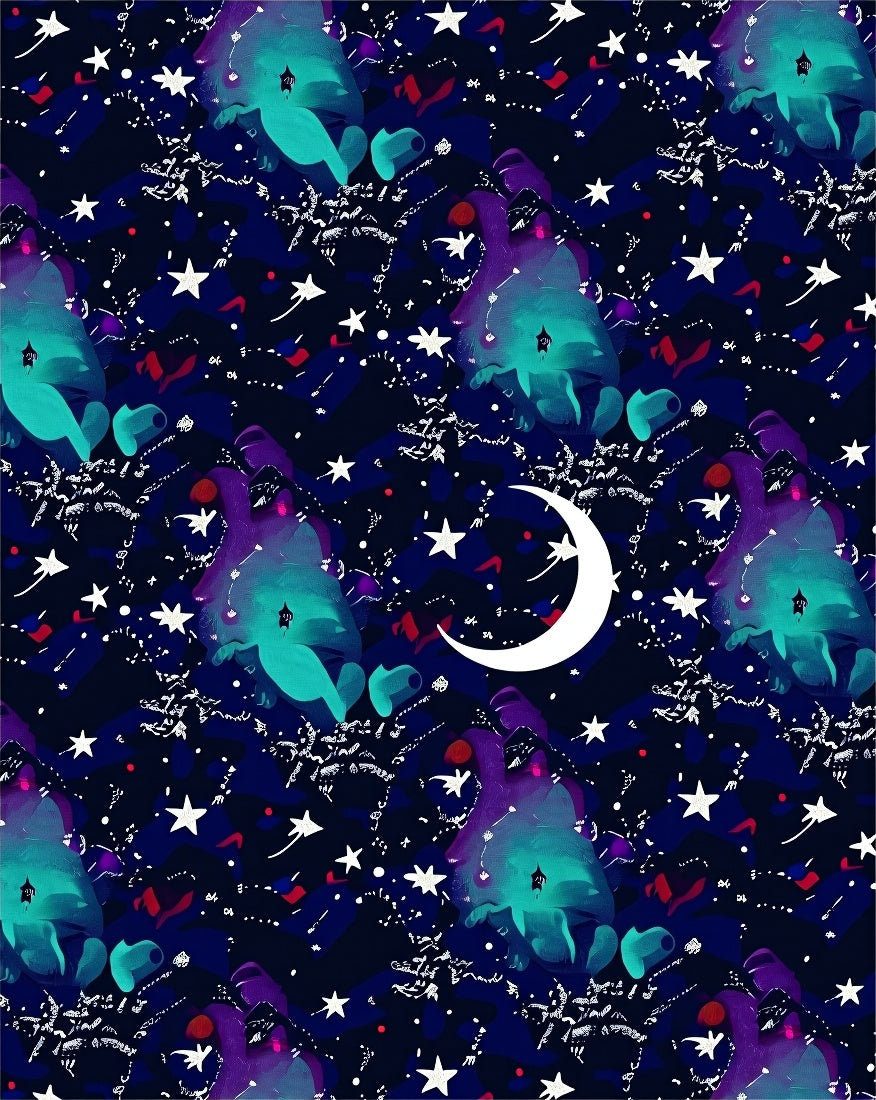 Celestial Nightscape Featuring Twinkling Stars and Moon Motif(Blue)