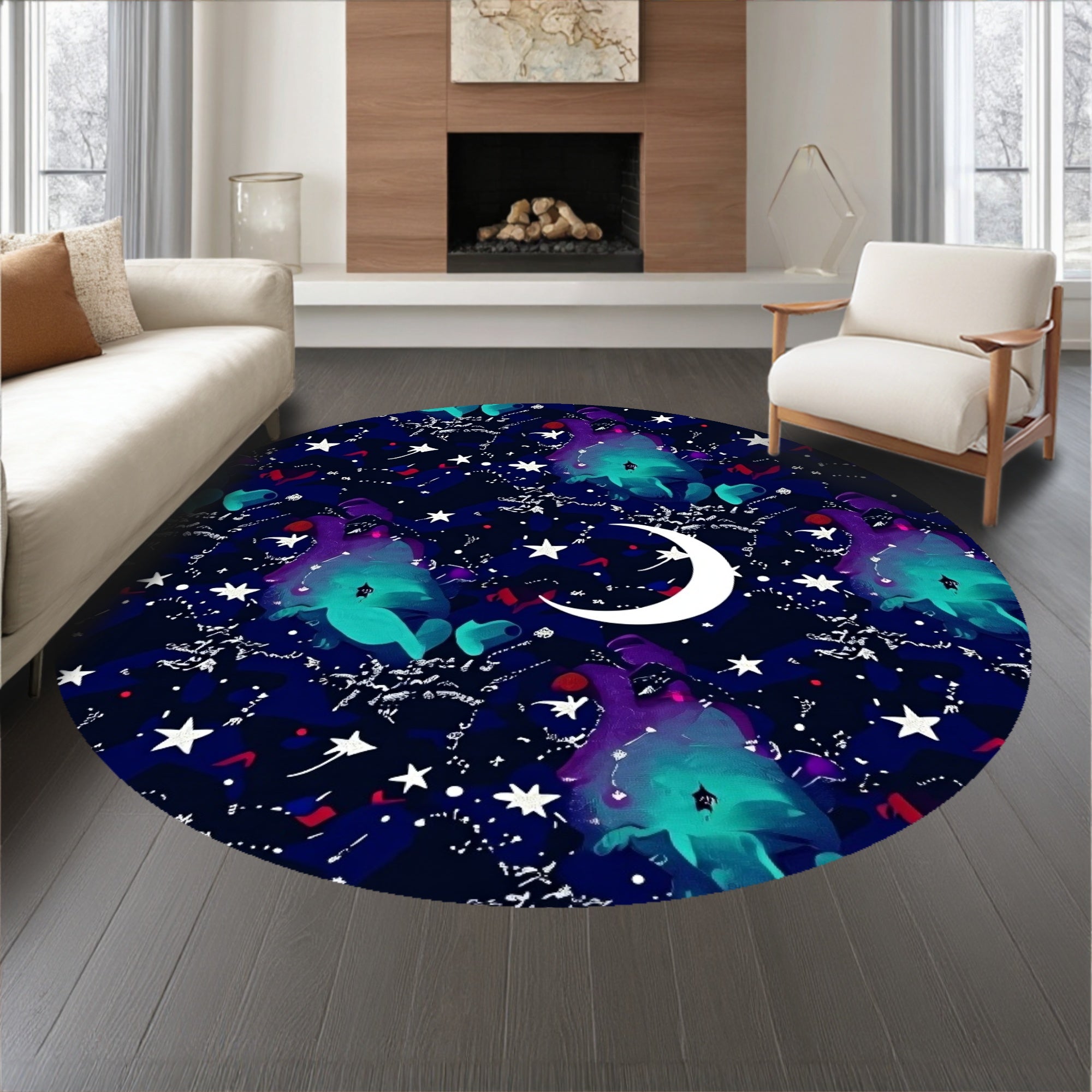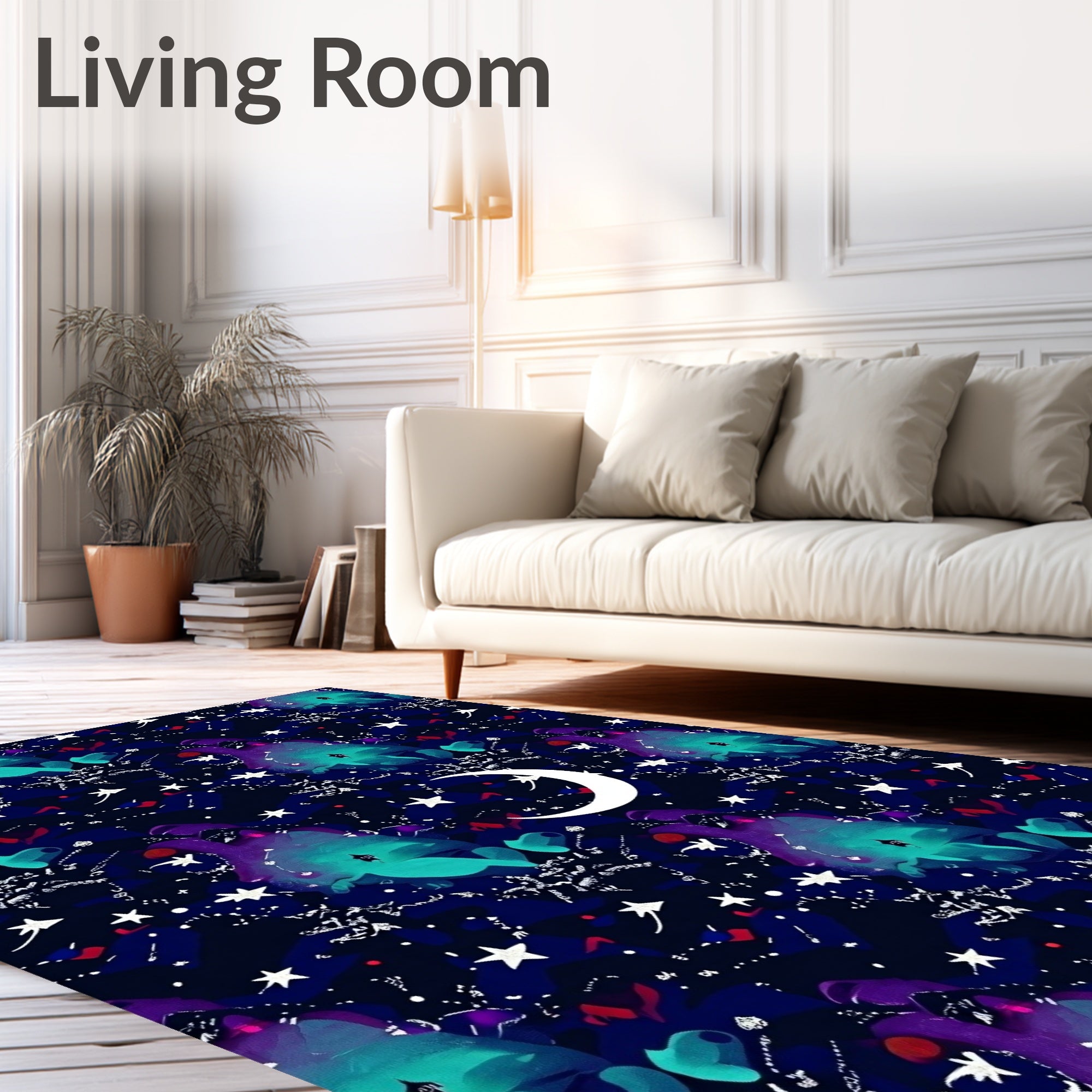 Ultra Soft Area Rug, Non Slip, Stain Resistant, Washable Area Rugs for Living Room, Bedroom, Celestial Nightscape Featuring Twinkling Stars and Moon Motif(Blue) Overview: