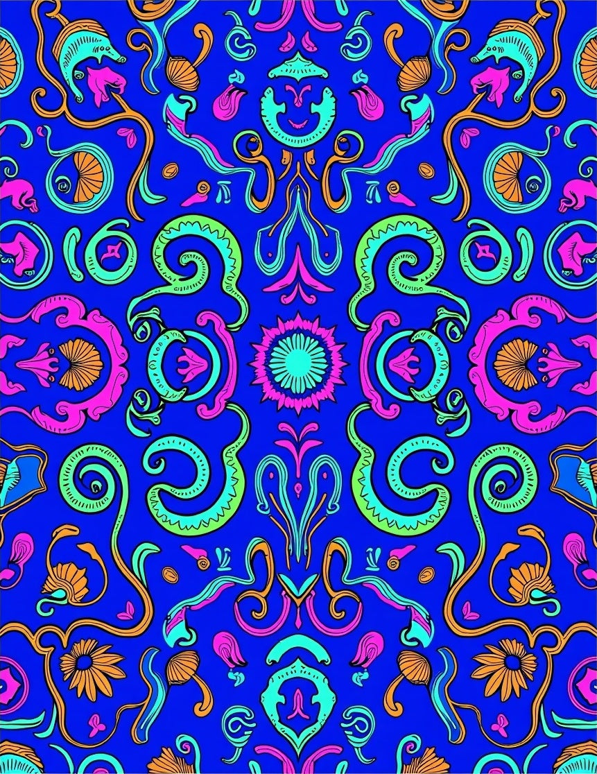 Celestial Ocean Fantasy with Interwoven Marine Creatures(Blue)