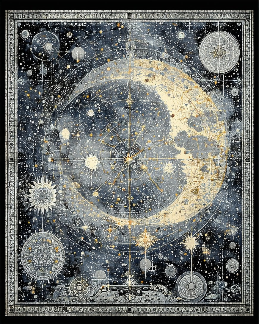Celestial Phases with Sunburst and Astral Clockwork Motifs(Black)