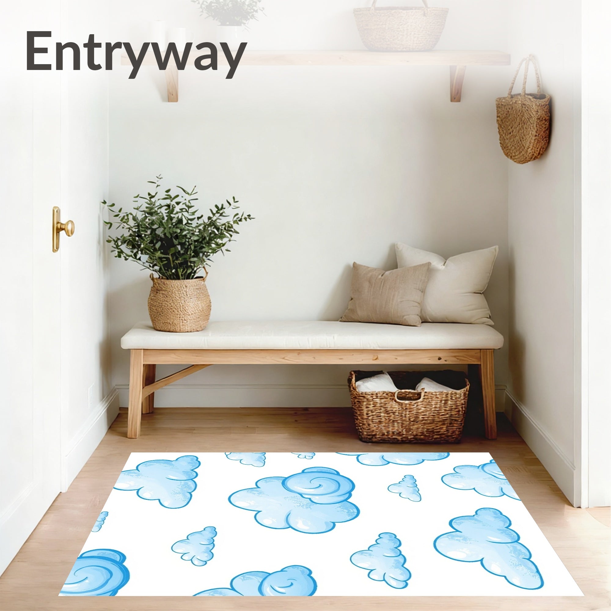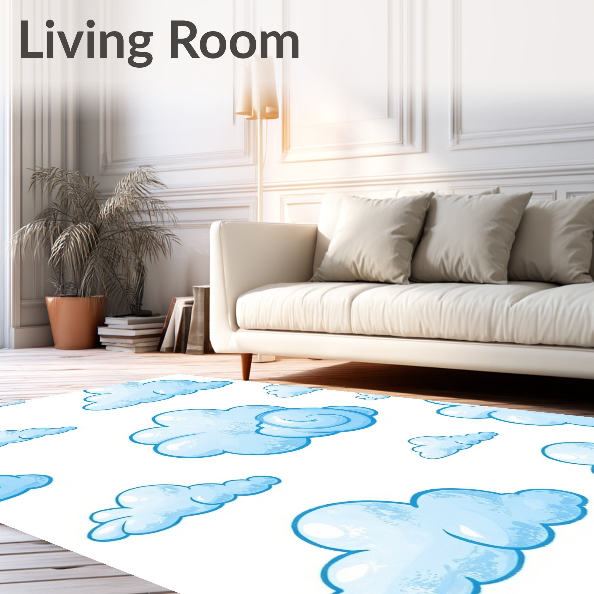Flatwoven High Traffic Area Rug, Celestial Puff Motif with Whimsical Contour Design, Non Slip, Stain Resistant, Washable Area Rugs for Living Room, Bedroom (Blue) Overview: