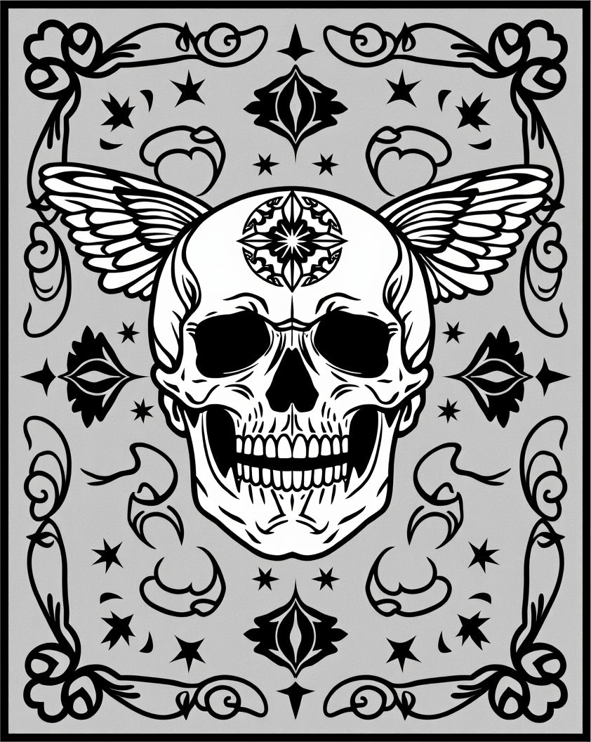 Celestial Skull and Moth with Starburst Details Lunar Motifs(Gray)