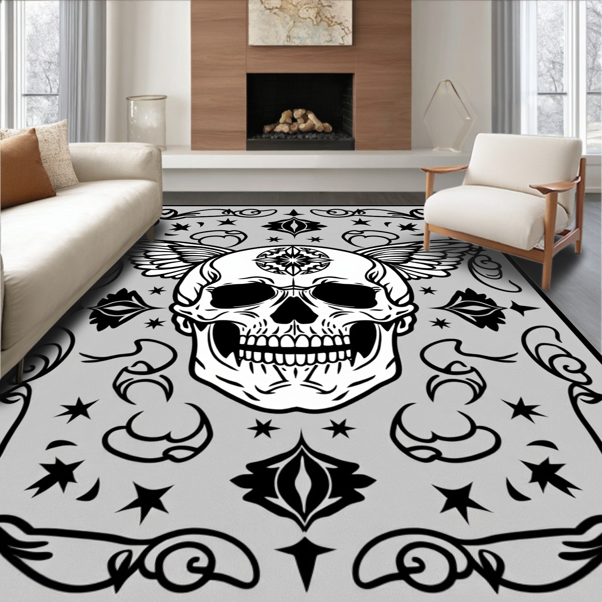 Ultra Soft Area Rug, Non Slip, Stain Resistant, Washable Area Rugs for Living Room, Bedroom, Celestial Skull and Moth with Starburst Details Lunar Motifs(Gray) Overview: