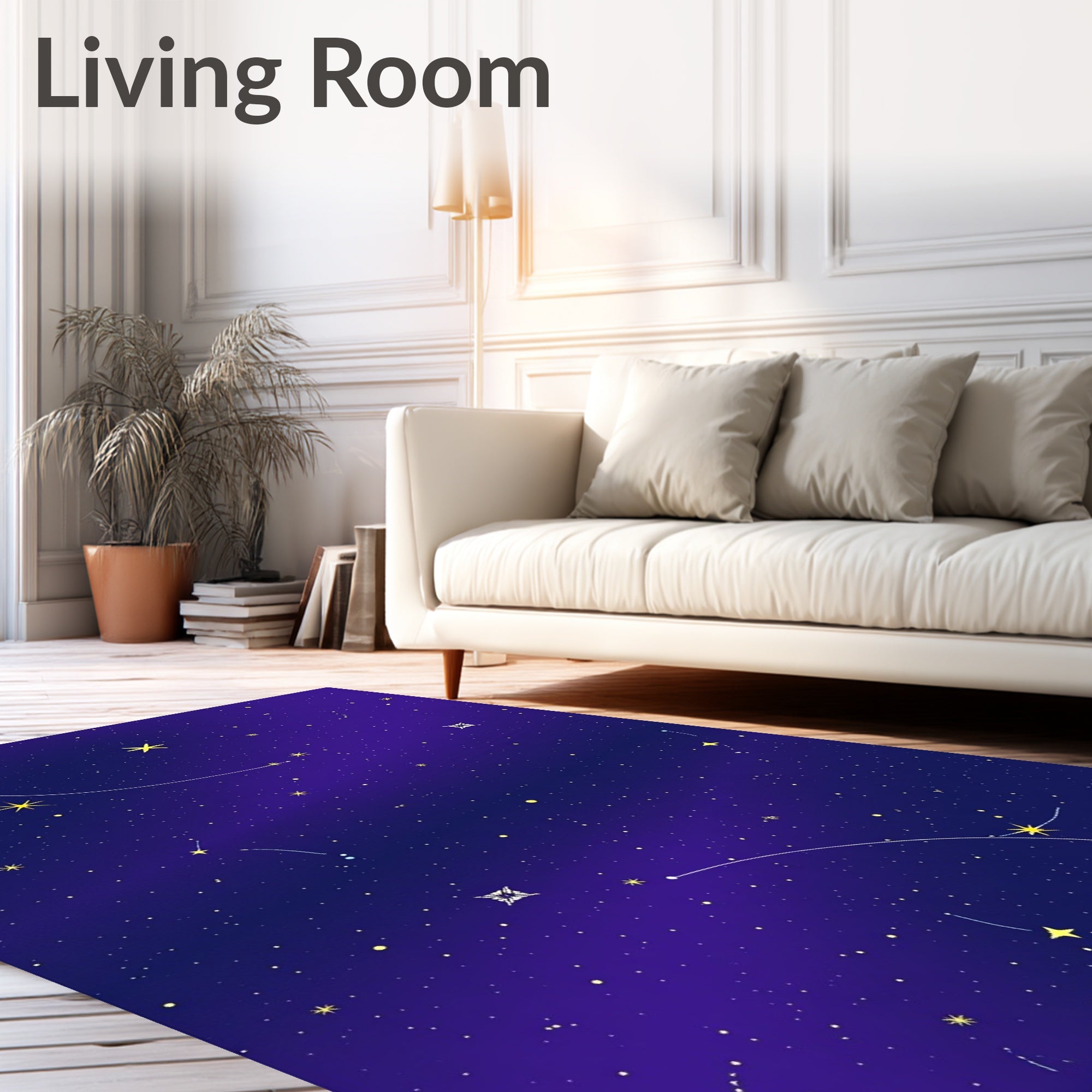 Ultra Soft Area Rug, Non Slip, Stain Resistant, Washable Area Rugs for Living Room, Bedroom, Celestial Sky with Constellation Mapping Design(Purple) Overview:
