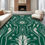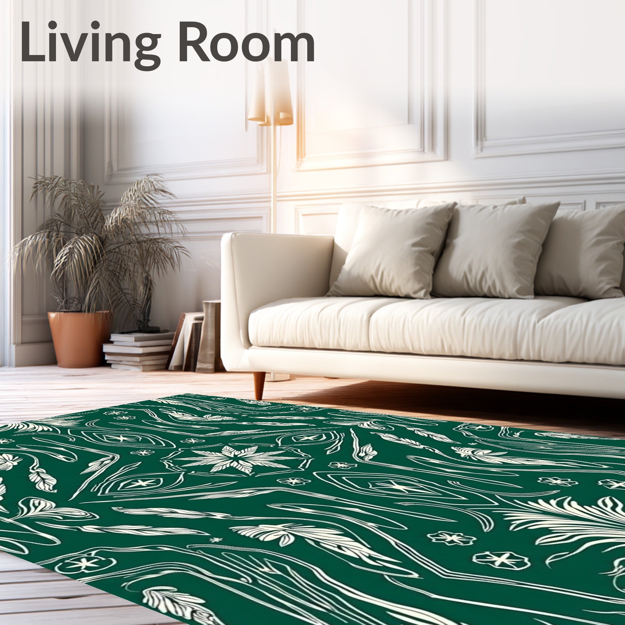 Ultra Soft Area Rug, Non Slip, Stain Resistant, Washable Area Rugs for Living Room, Bedroom, Celestial Snow Crystal with Radiant Boho Design(Green) Overview: