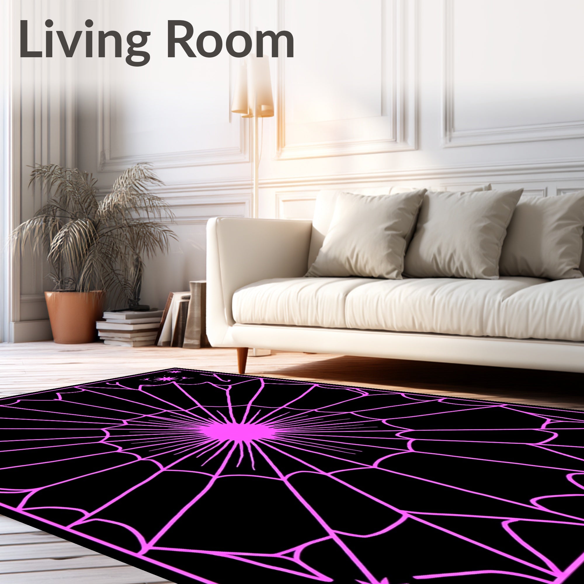 Ultra Soft Area Rug, Non Slip, Stain Resistant, Washable Area Rugs for Living Room, Bedroom, Celestial Spider Filigree with Radiating Starburst(Pink) Overview: