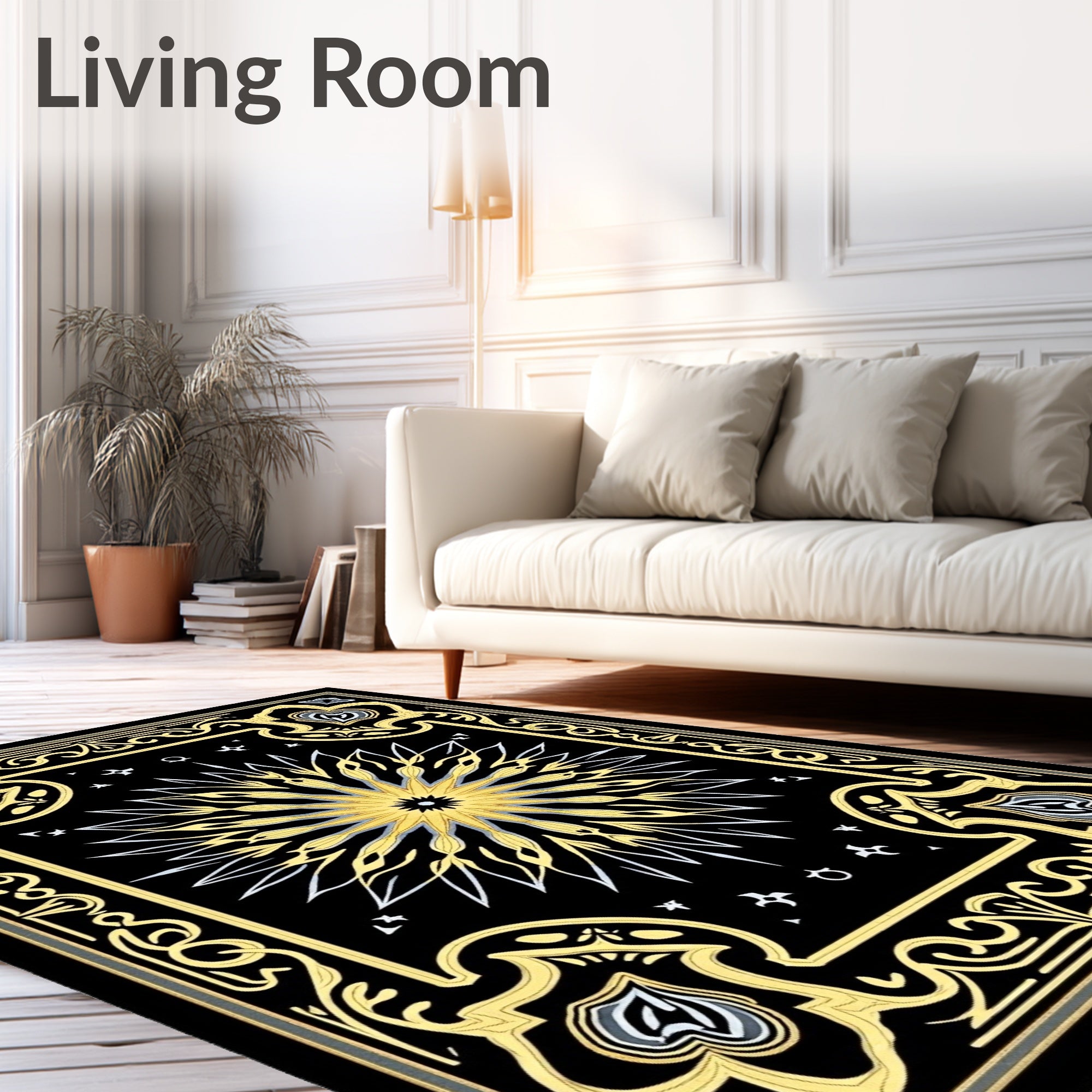 Ultra Soft Area Rug, Non Slip, Stain Resistant, Washable Area Rugs for Living Room, Bedroom, Celestial Starburst Arrangement with Radiant(Black) Overview:
