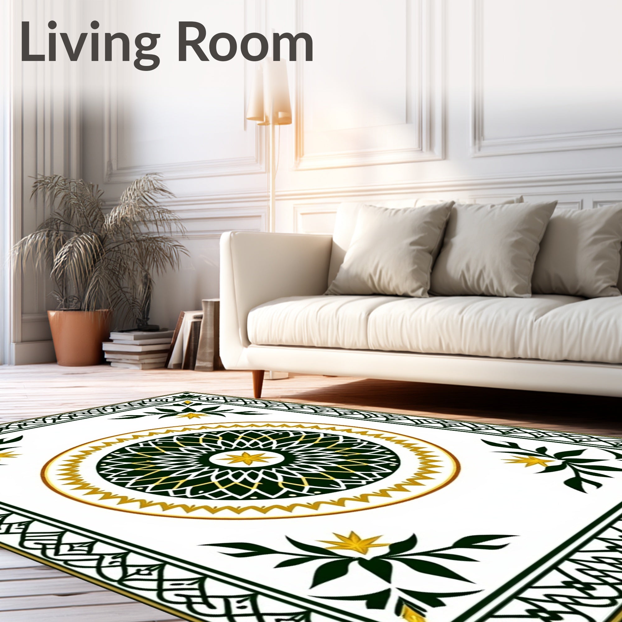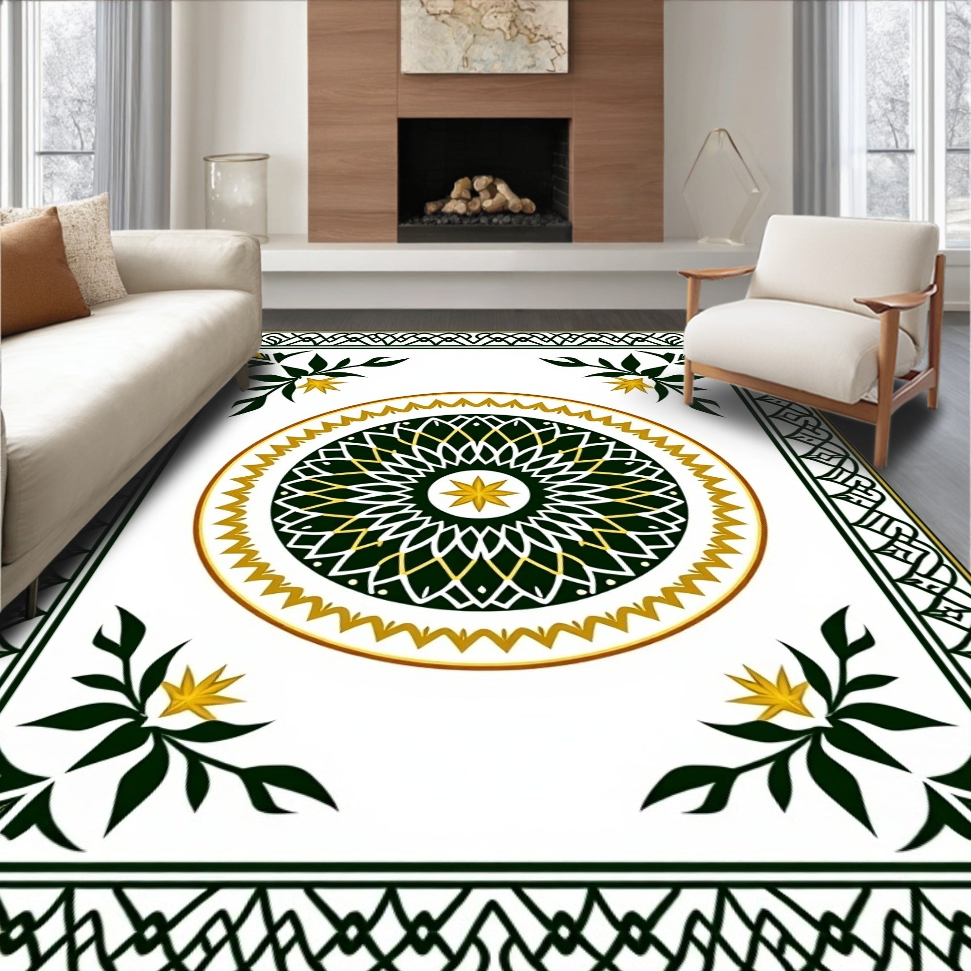 Ultra Soft Area Rug, Non Slip, Stain Resistant, Washable Area Rugs for Living Room, Bedroom, Celestial Starburst Featuring Interwoven Lattice and Holiday Ornaments(Green) Overview: