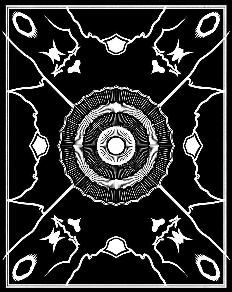 Celestial Starburst Motif with Abstract Interlocking Lines(Black)
