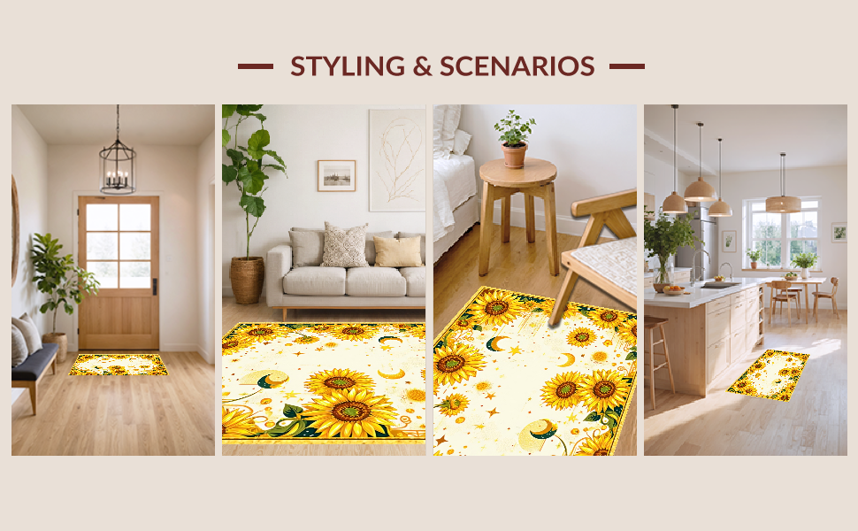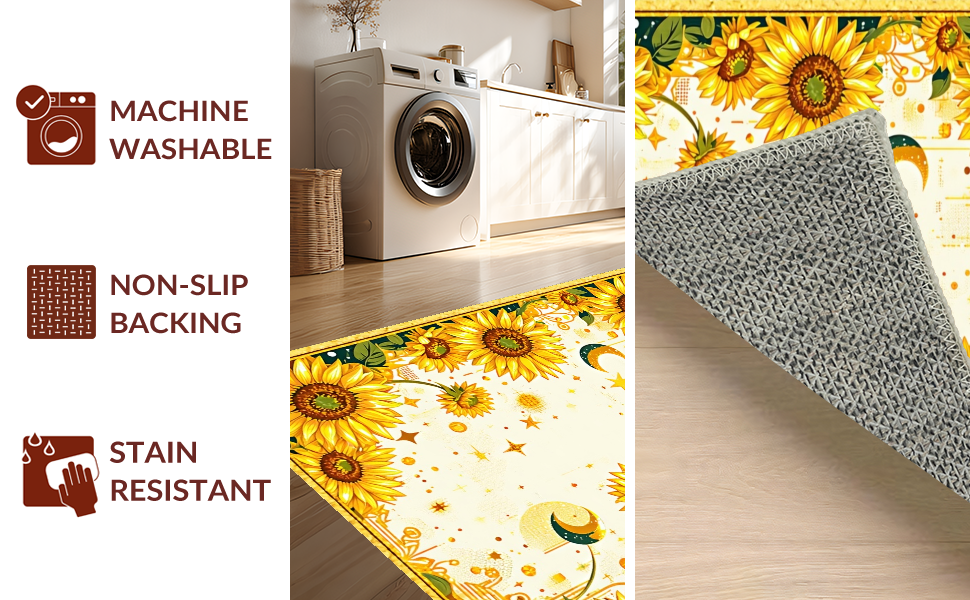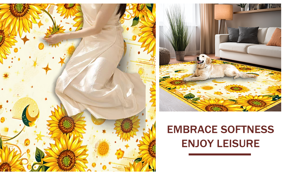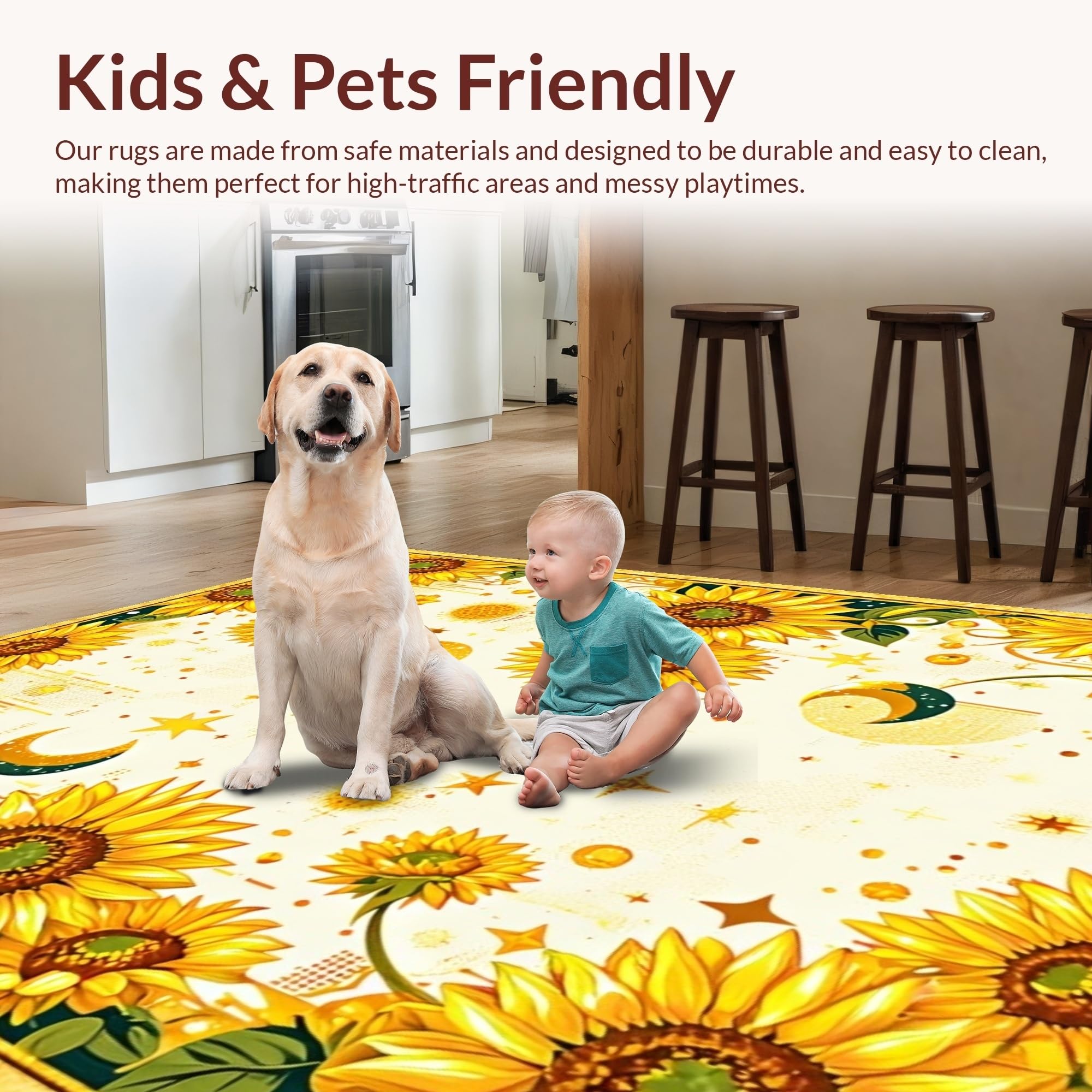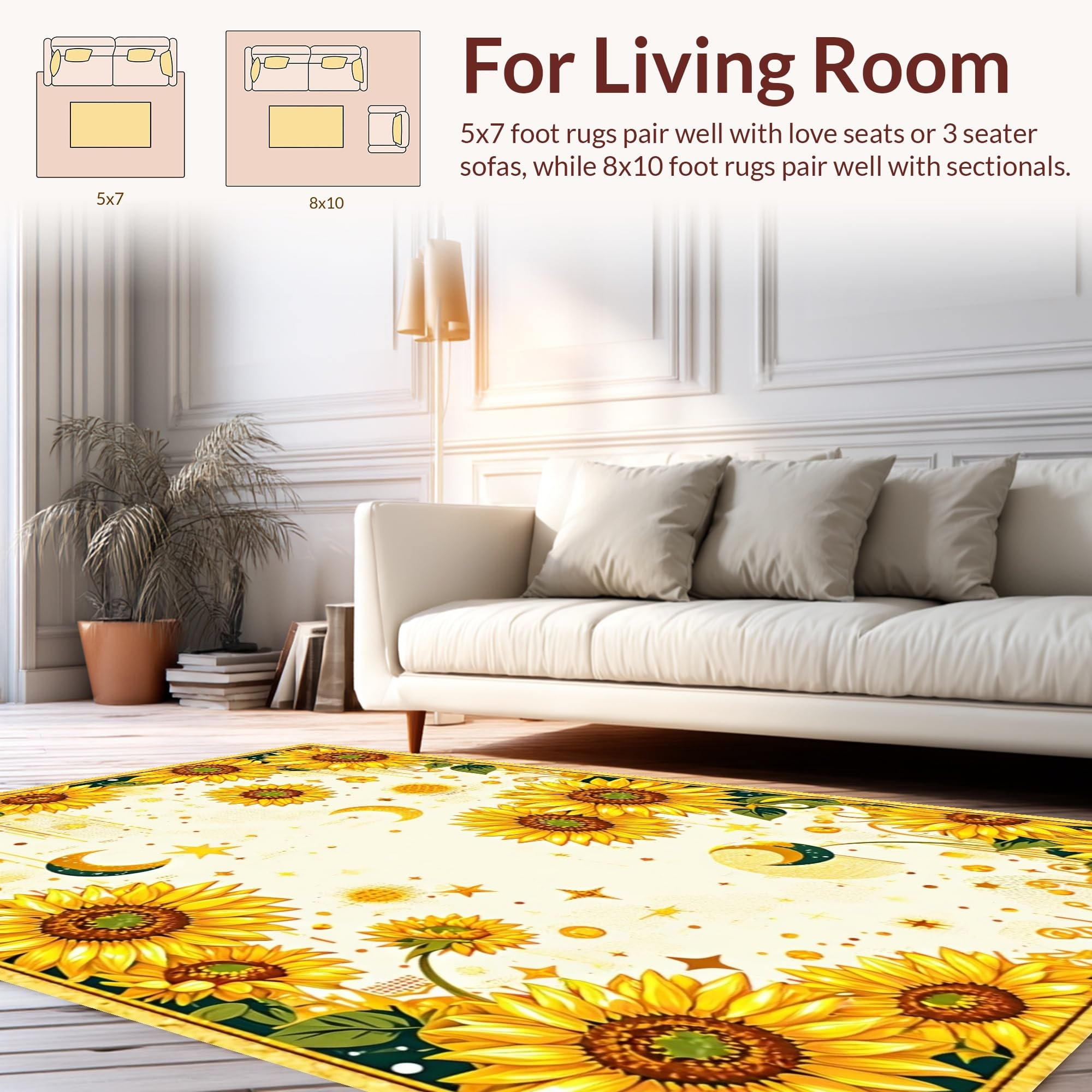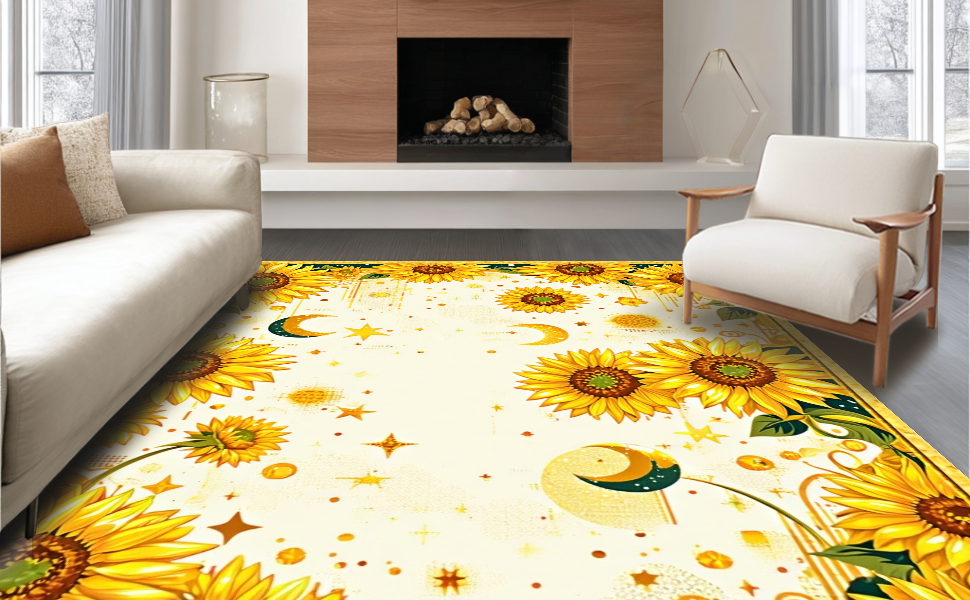 Ultra Soft Area Rug, Non Slip, Stain Resistant, Washable Area Rugs for Living Room, Bedroom, Celestial Sunflower Retro Aesthetic(Yellow) Overview: