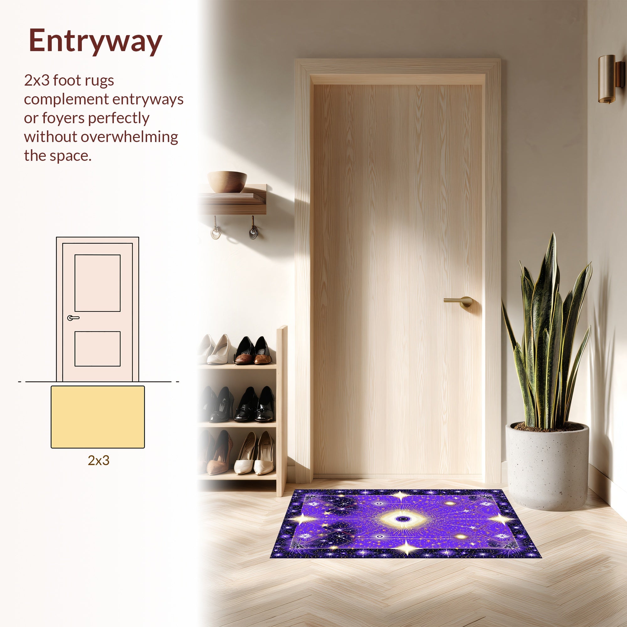 Ultra Soft Area Rug, Non Slip, Stain Resistant, Washable Area Rugs for Living Room, Bedroom, Celestial Tapestry Starburst and Constellation Artistry(Purple) Overview: