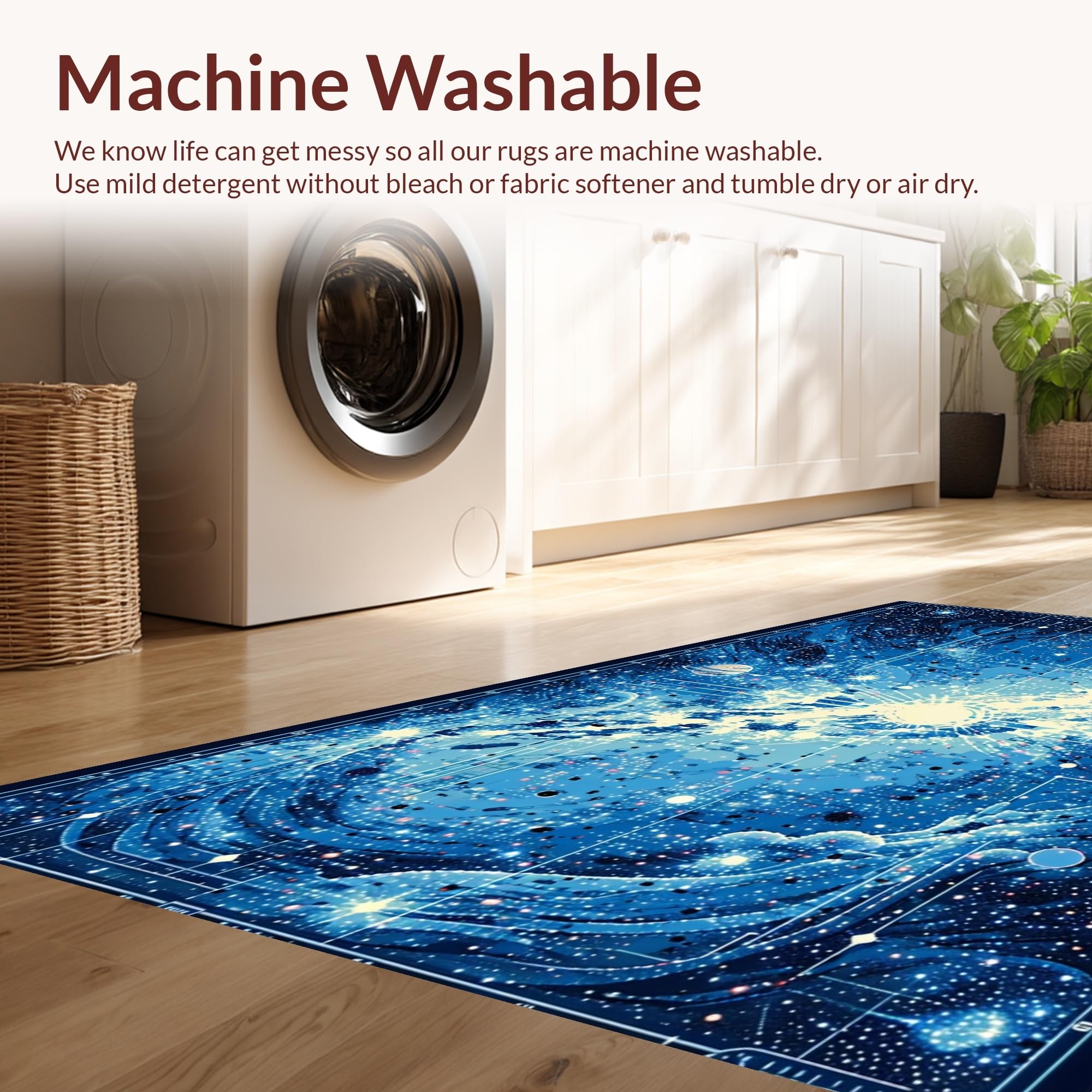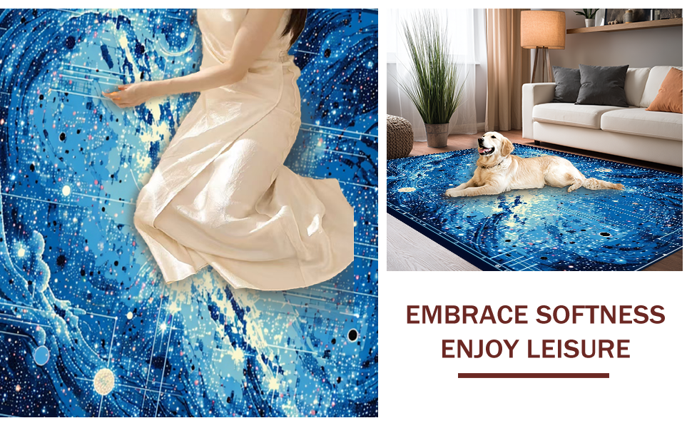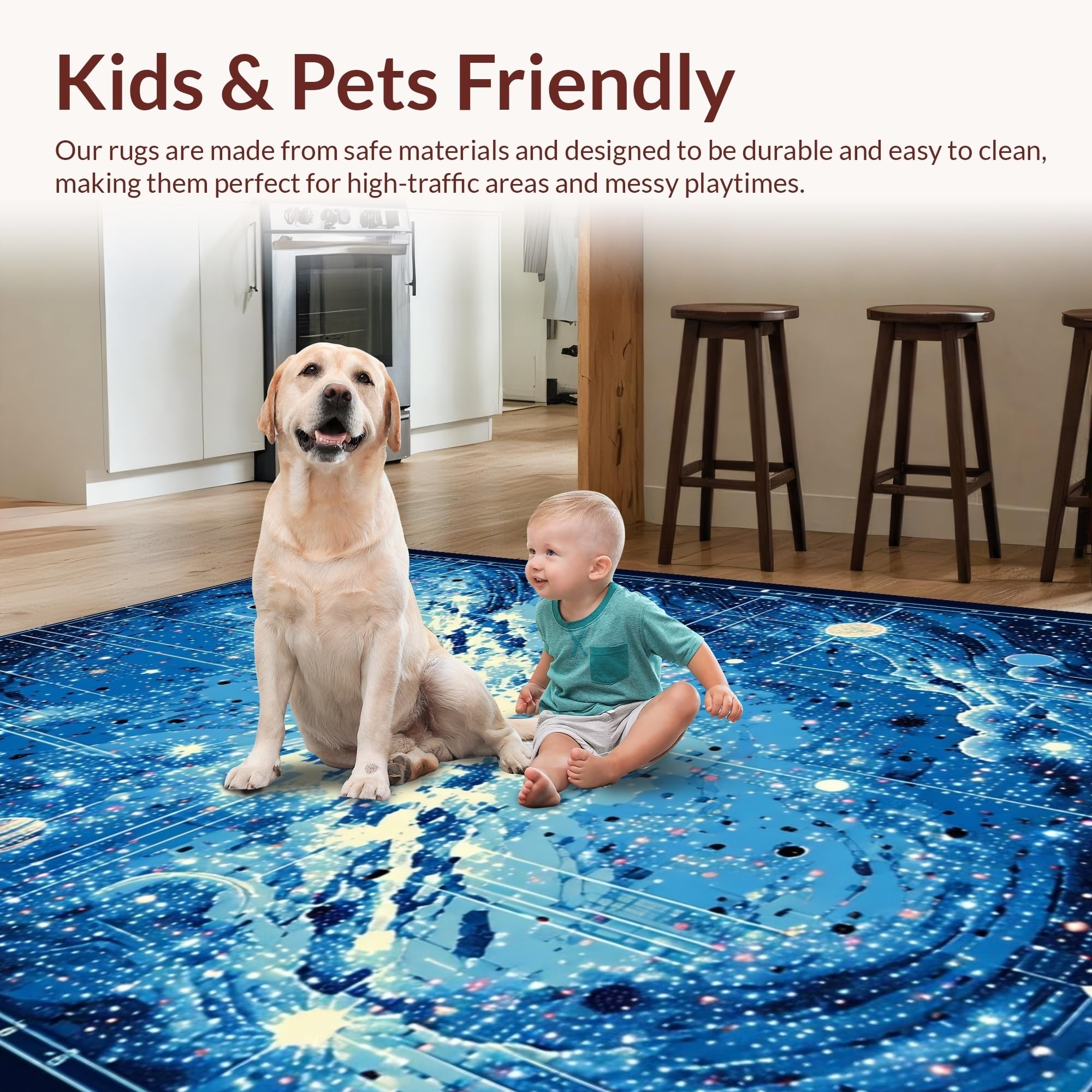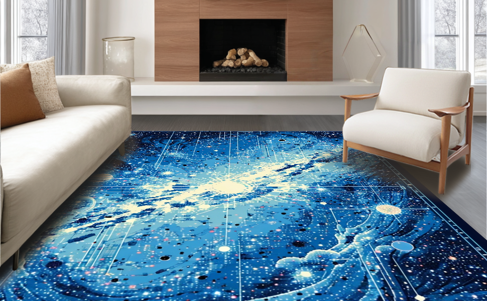 Ultra Soft Area Rug, Non Slip, Stain Resistant, Washable Area Rugs for Living Room, Bedroom, Celestial Themed Cozy Aesthetic(Blue) Overview: