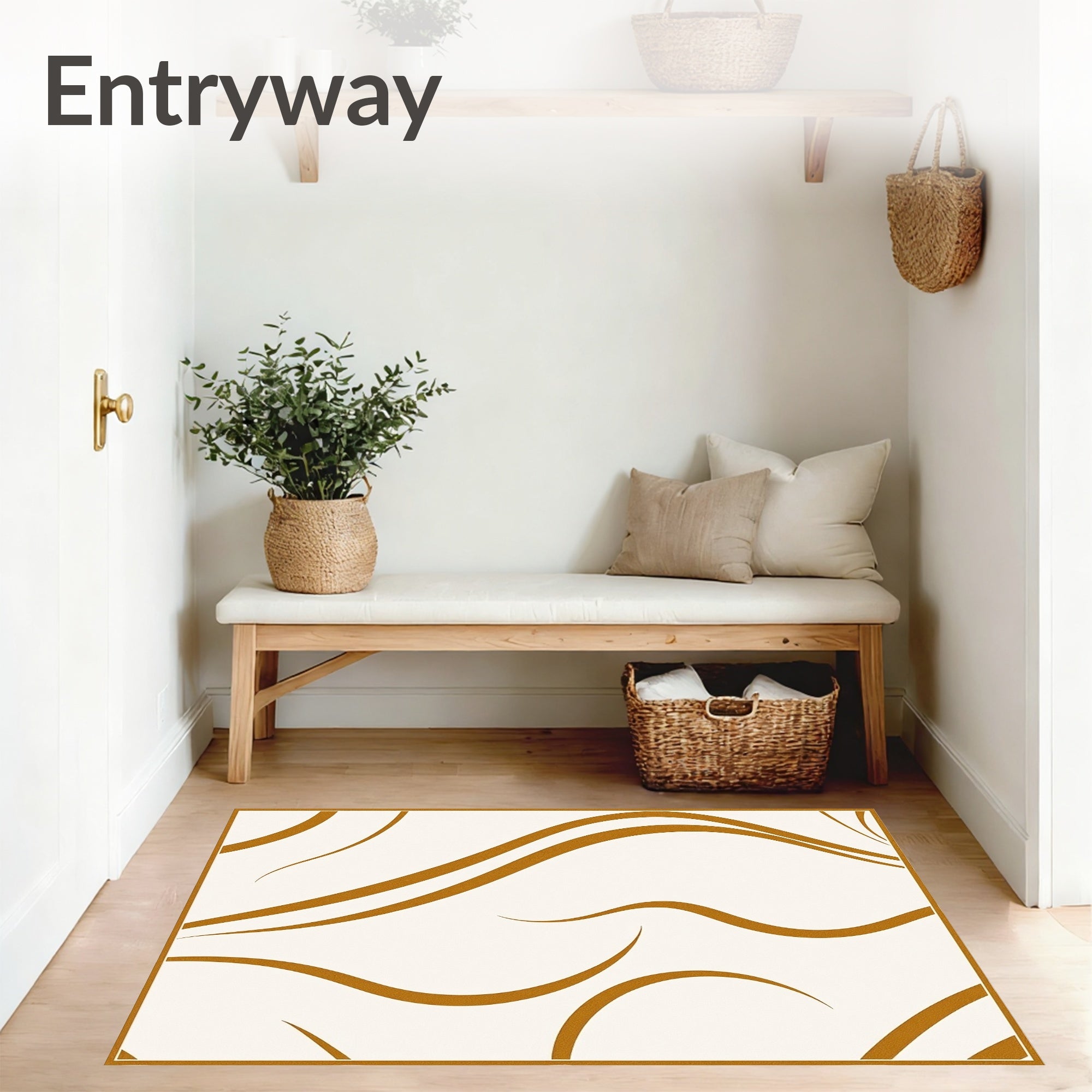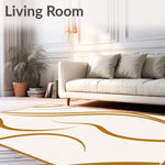 Ultra Soft Area Rug, Non Slip, Stain Resistant, Washable Area Rugs for Living Room, Bedroom, Celestial Vapor Wave Design Luxury Shag Floor(Gold) Overview: