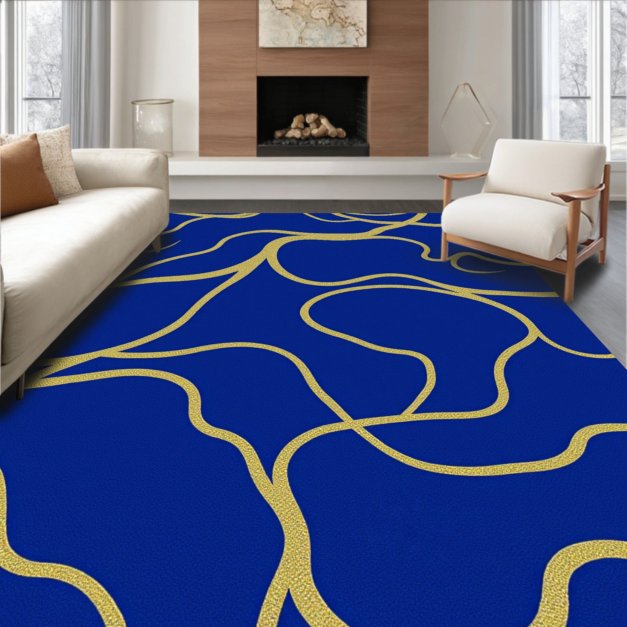 Ultra Soft Area Rug, Non Slip, Stain Resistant, Washable Area Rugs for Living Room, Bedroom, Celestial Wave Featuring Metallic Streaks and Fluid Abstract Forms(Blue) Overview: