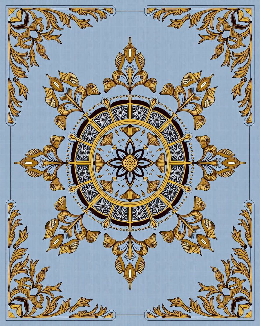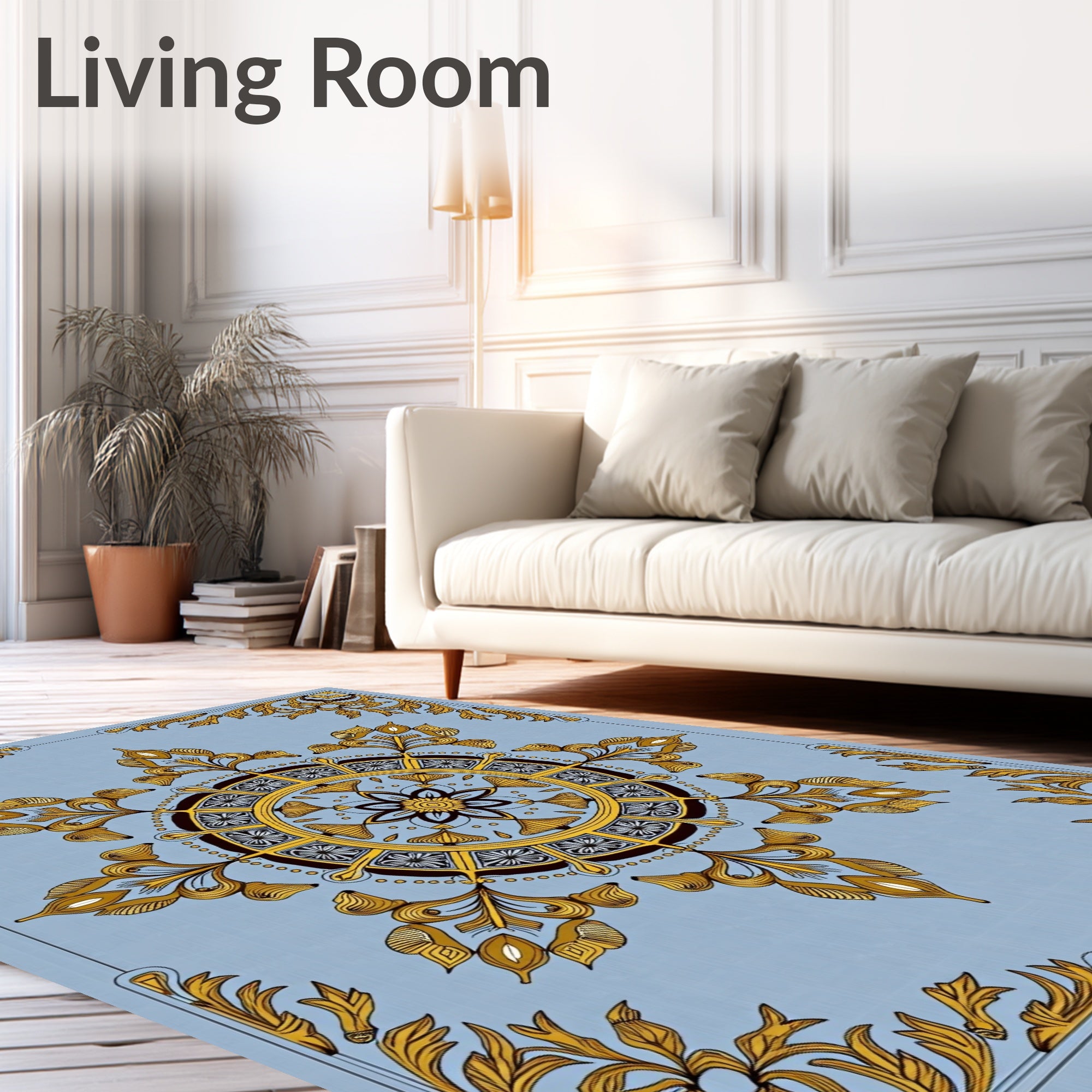 Ultra Soft Area Rug, Non Slip, Stain Resistant, Washable Area Rugs for Living Room, Bedroom, Celestial with Boho Leaf Detailing(Blue) Overview: