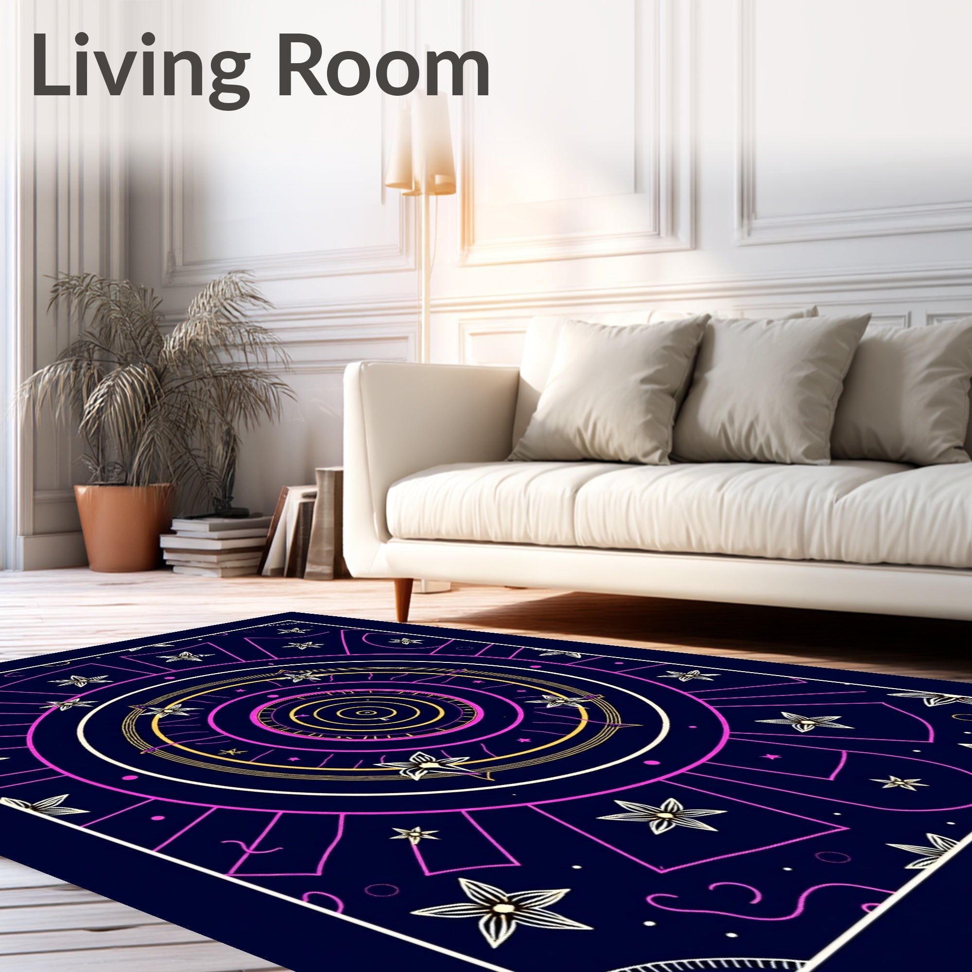 Ultra Soft Area Rug, Non Slip, Stain Resistant, Washable Area Rugs for Living Room, Bedroom, Celestial Wonderland Decorative With Twinkling Arrangement(Navy) Overview: