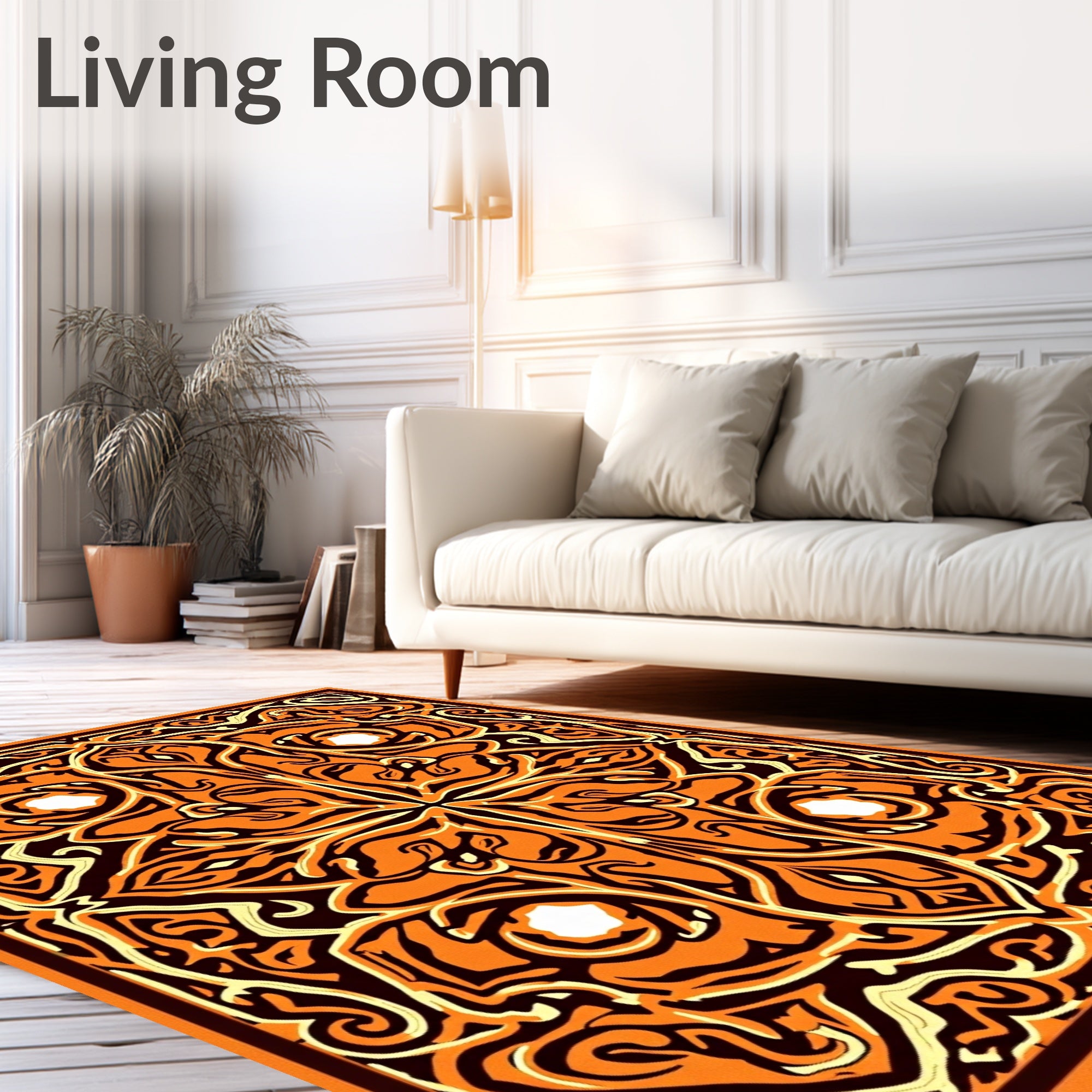 Ultra Soft Area Rug, Non Slip, Stain Resistant, Washable Area Rugs for Living Room, Bedroom, Celtic Knot Spiral with Ancient Symbol Weaving Area(Orange) Overview: