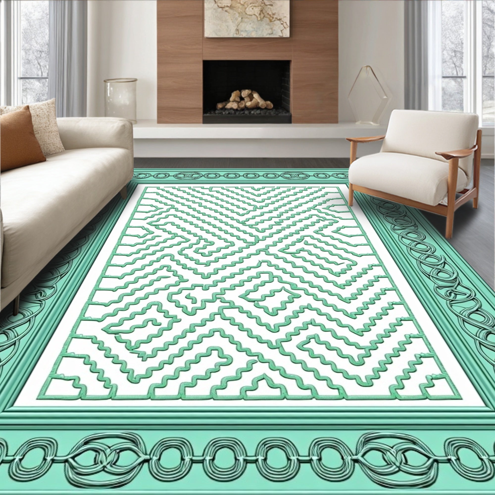 Ultra Soft Area Rug, Non Slip, Stain Resistant, Washable Area Rugs for Living Room, Bedroom, Celtic Knot Traditional with Interlaced Borders(Teal) Overview: