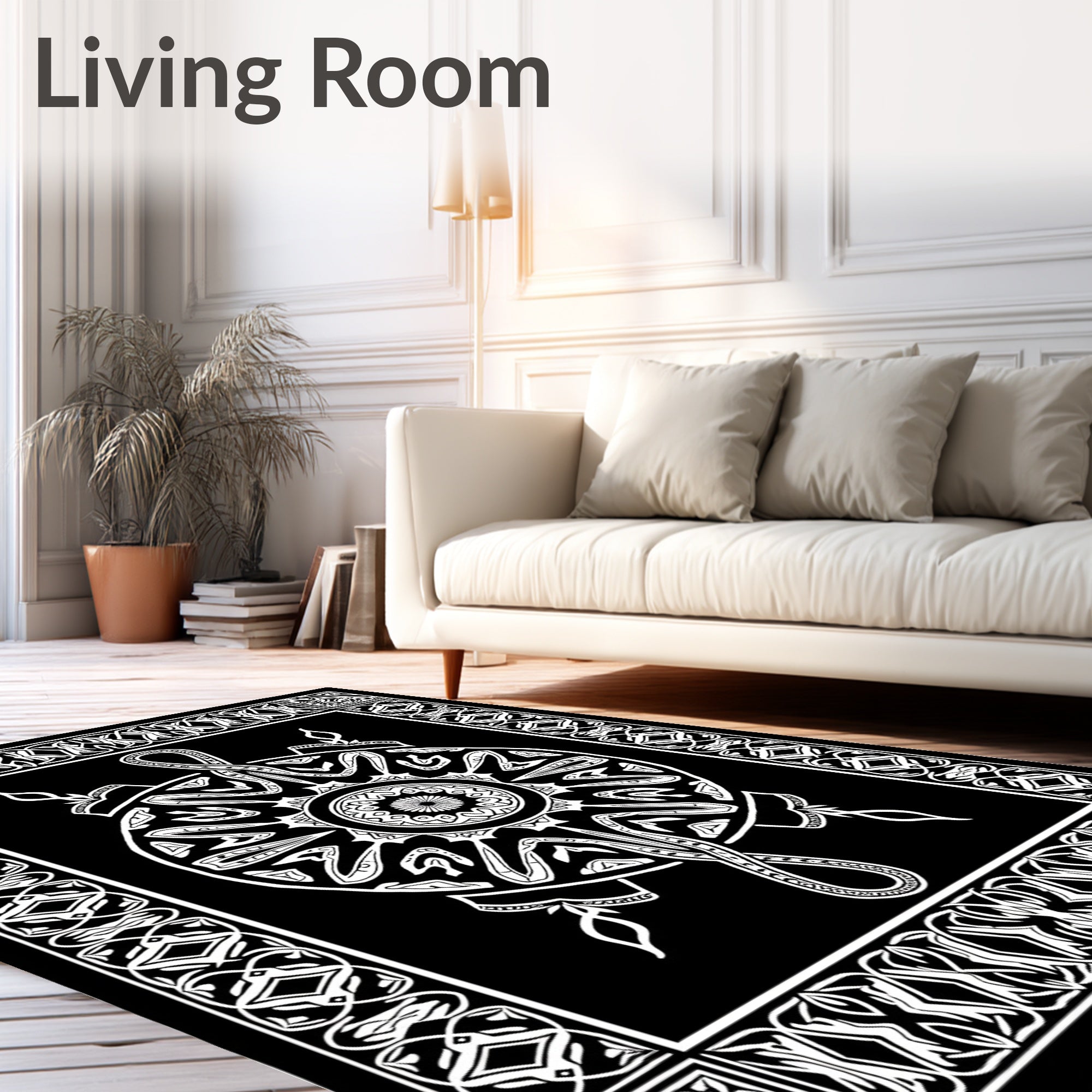 Ultra Soft Area Rug, Non Slip, Stain Resistant, Washable Area Rugs for Living Room, Bedroom, Celtic Knot with Ancient Gaelic Symbolism(Black) Overview: