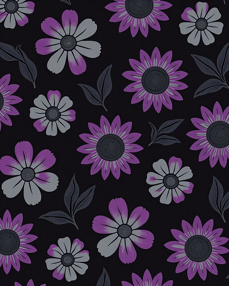 Charcoal Bloom Artistic Contemporary Flower Motif(Purple)