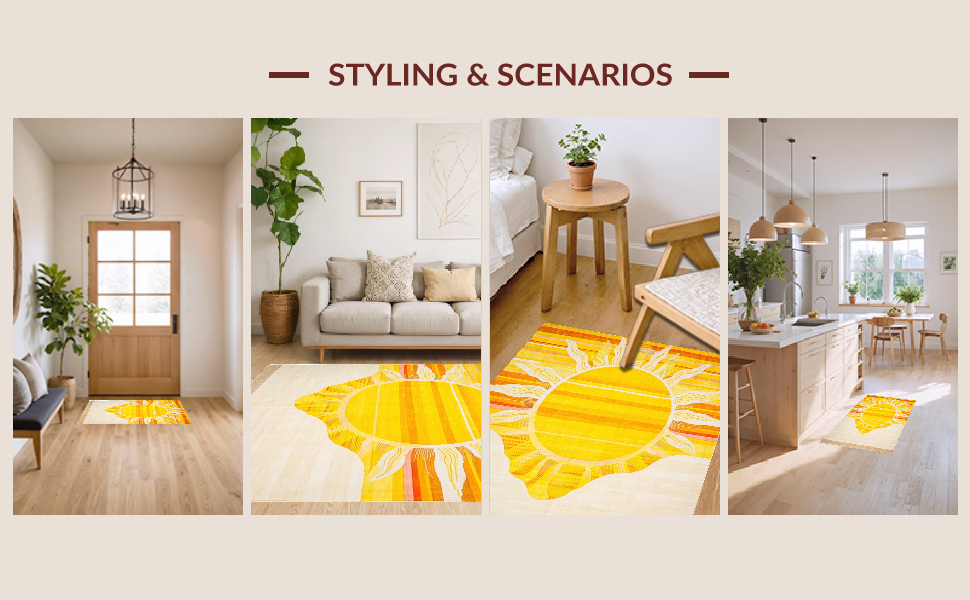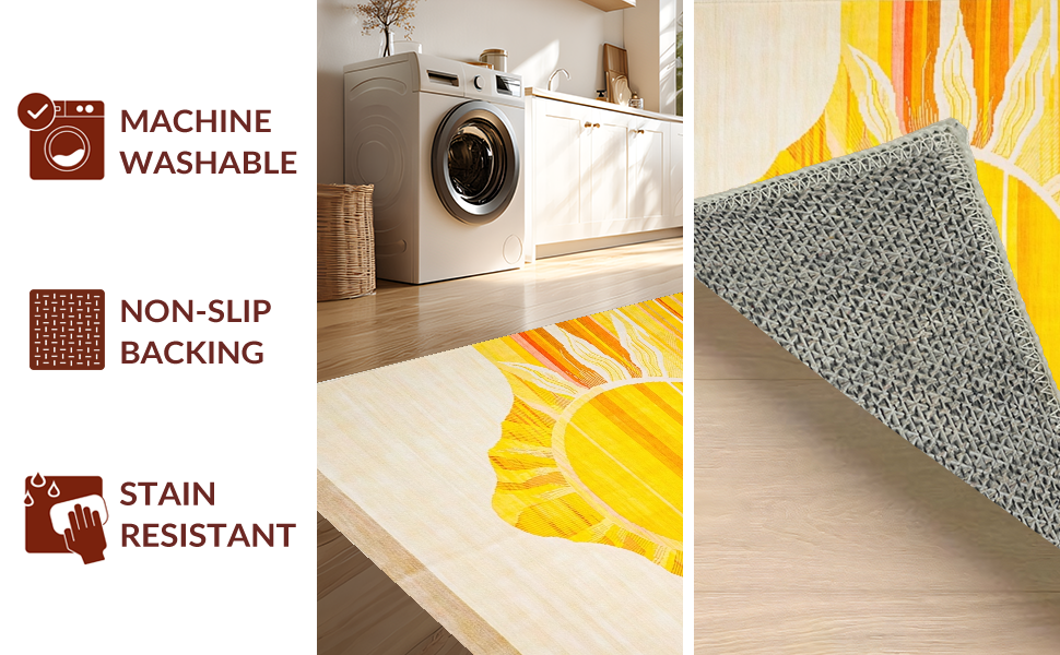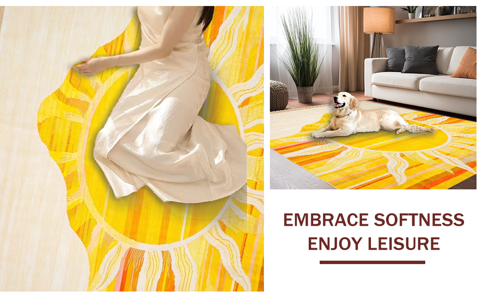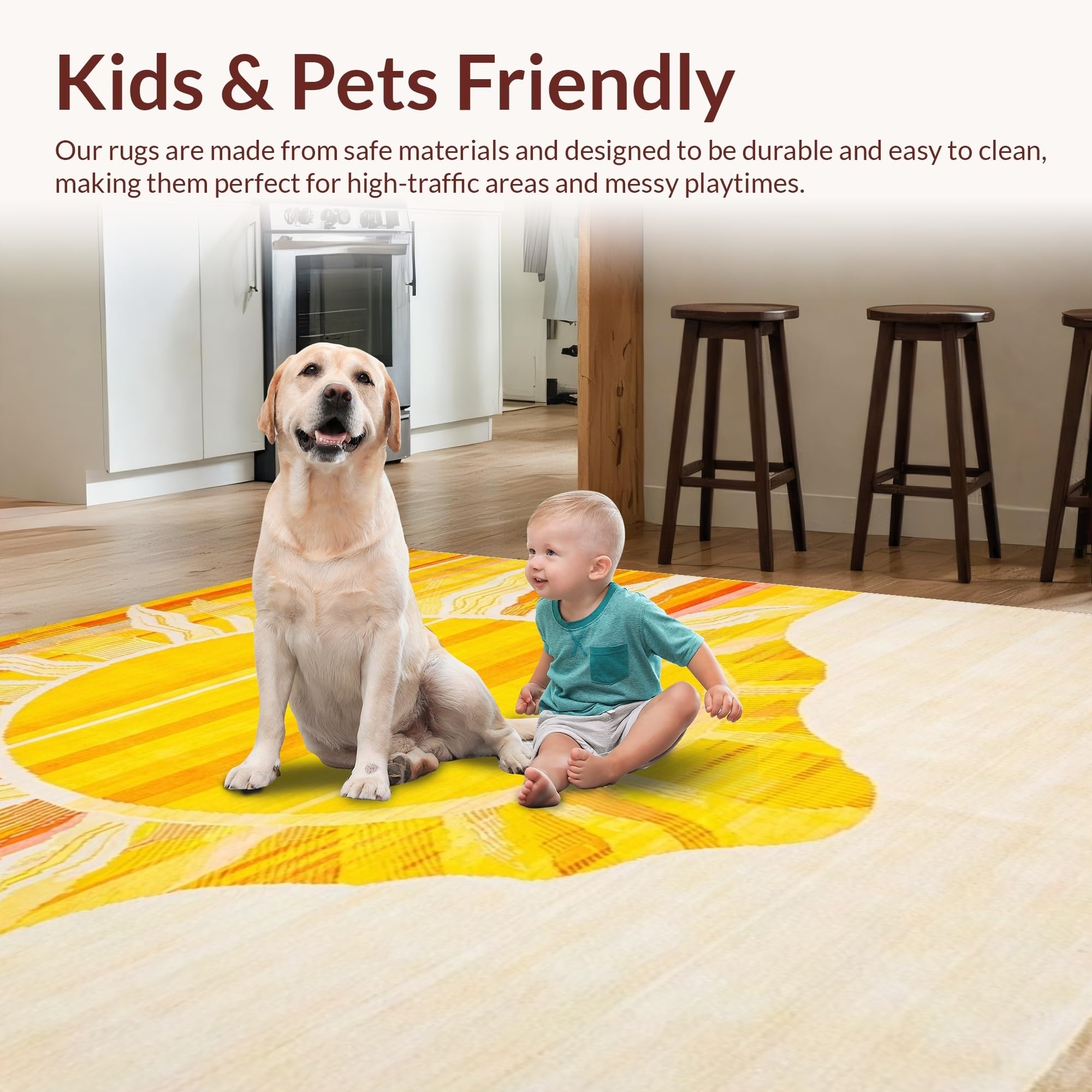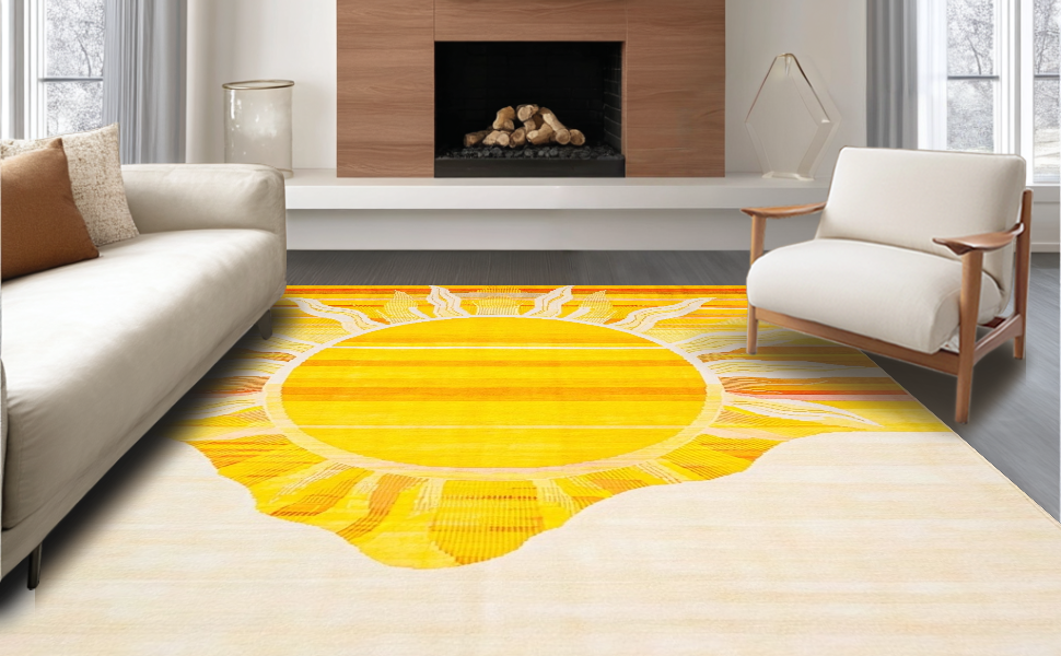 Ultra Soft Area Rug, Non Slip, Stain Resistant, Washable Area Rugs for Living Room, Bedroom, Charming Abstract Sunray Aesthetic(Yellow) Overview: