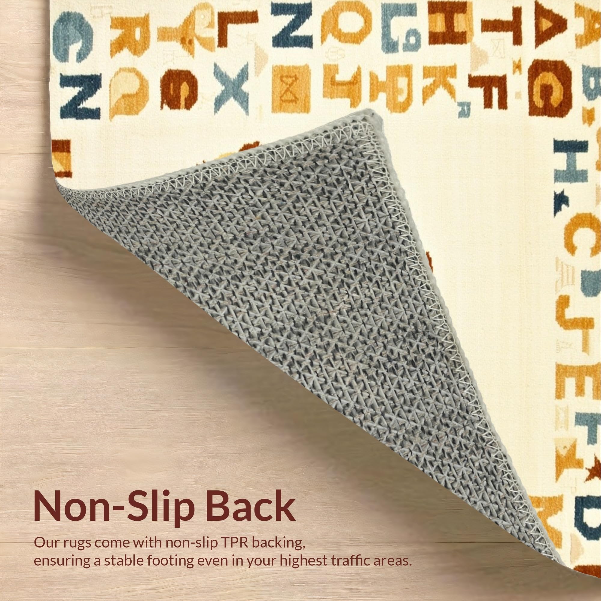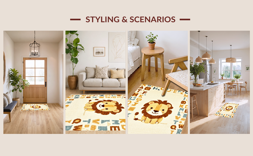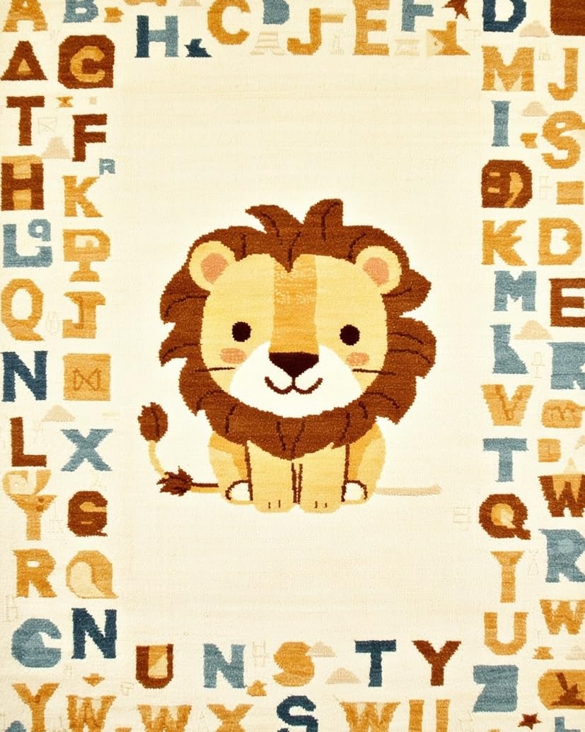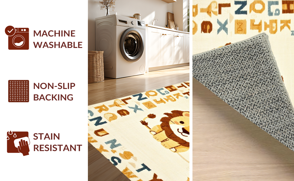Ultra Soft Area Rug, Non Slip, Stain Resistant, Washable Area Rugs for Living Room, Bedroom, Charming Alphabetic Lion Art(Beige) Overview: