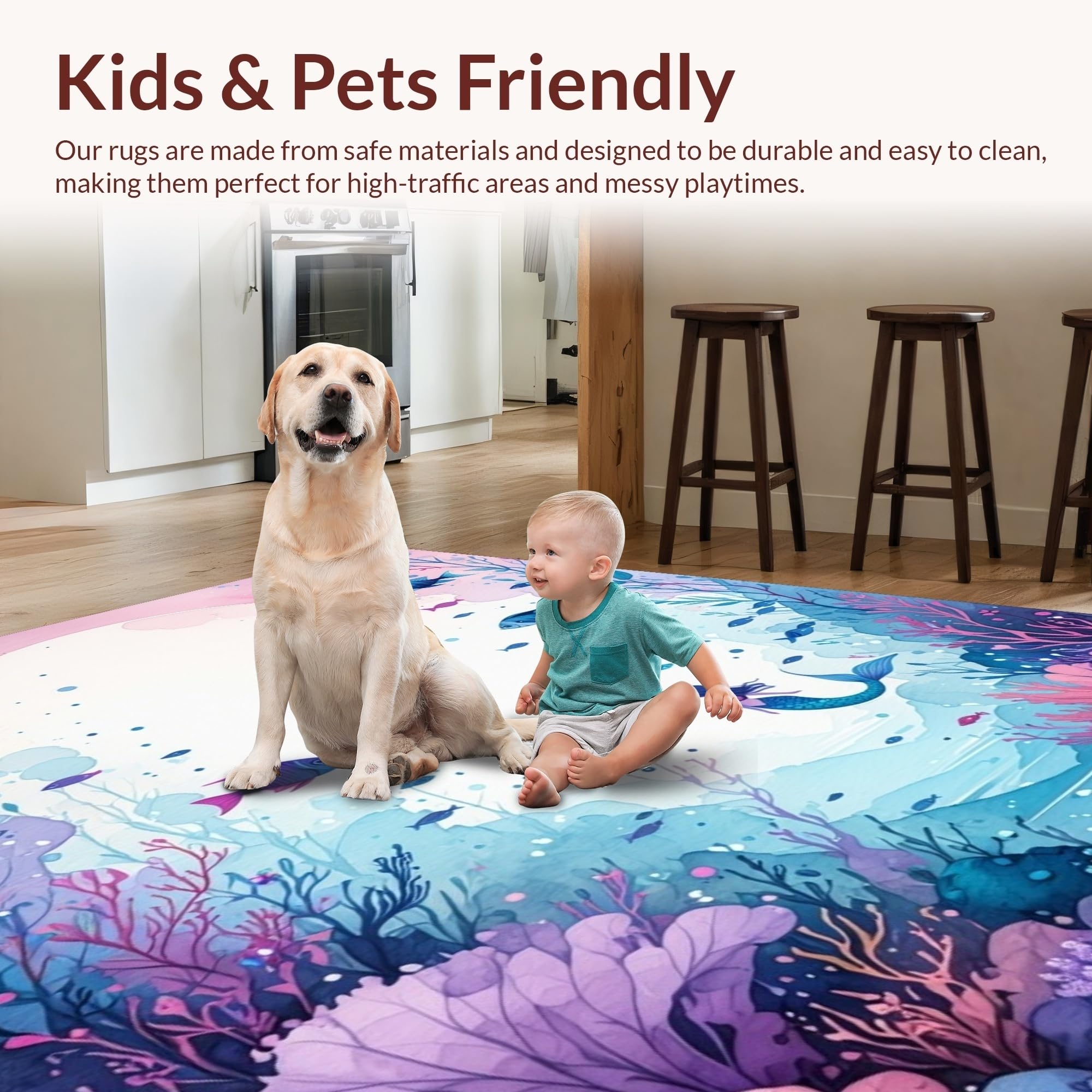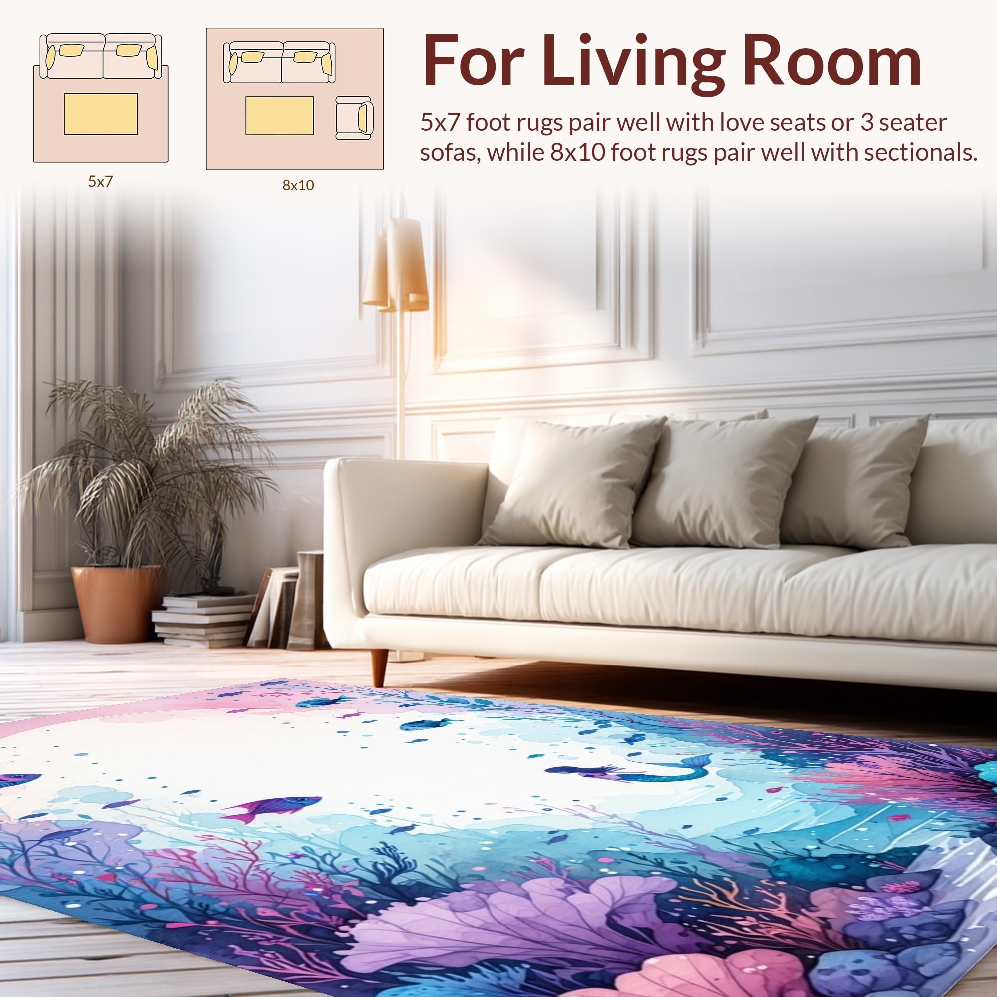 Ultra Soft Area Rug, Non Slip, Stain Resistant, Washable Area Rugs for Living Room, Bedroom, Charming Artistic Ocean Motif(Pink) Overview: