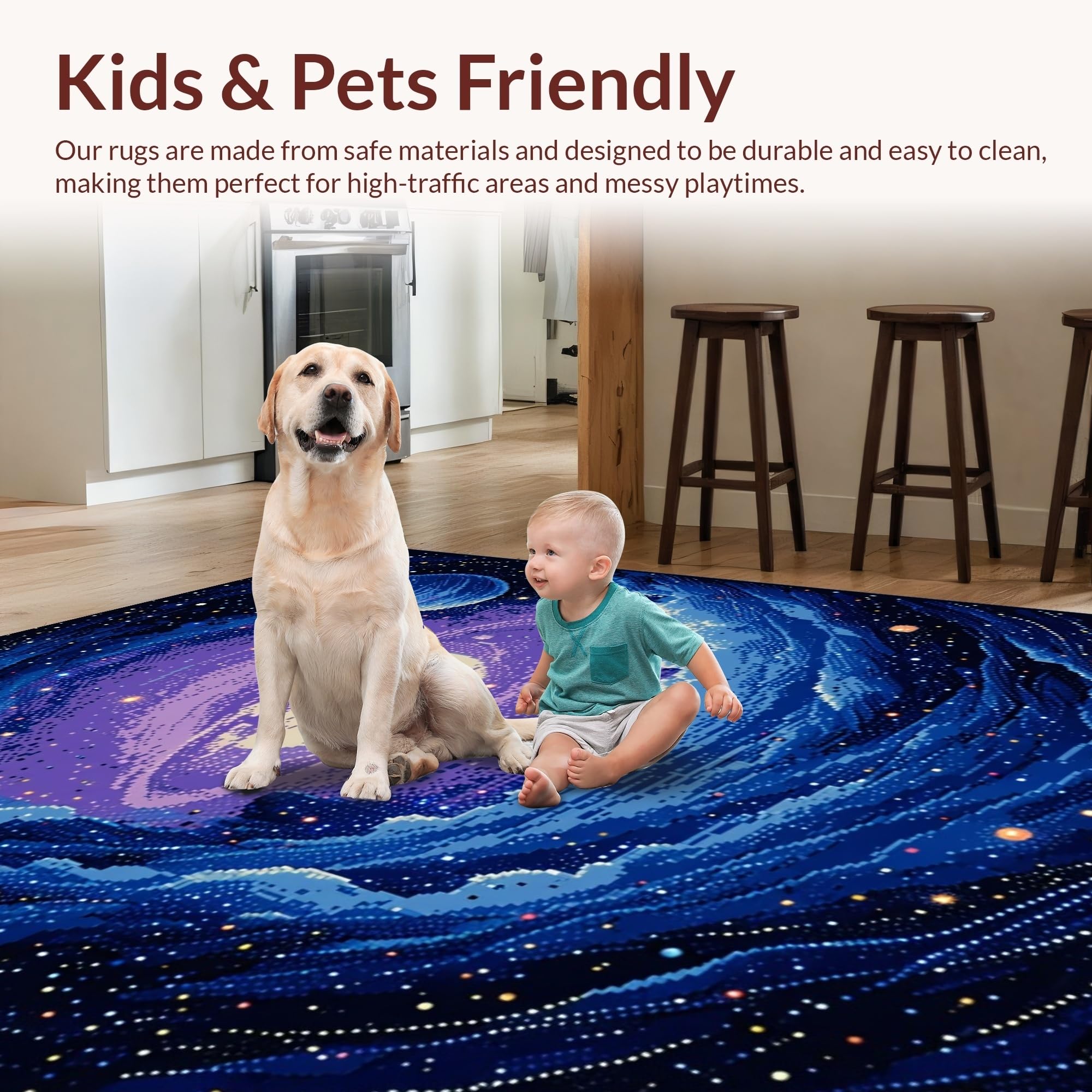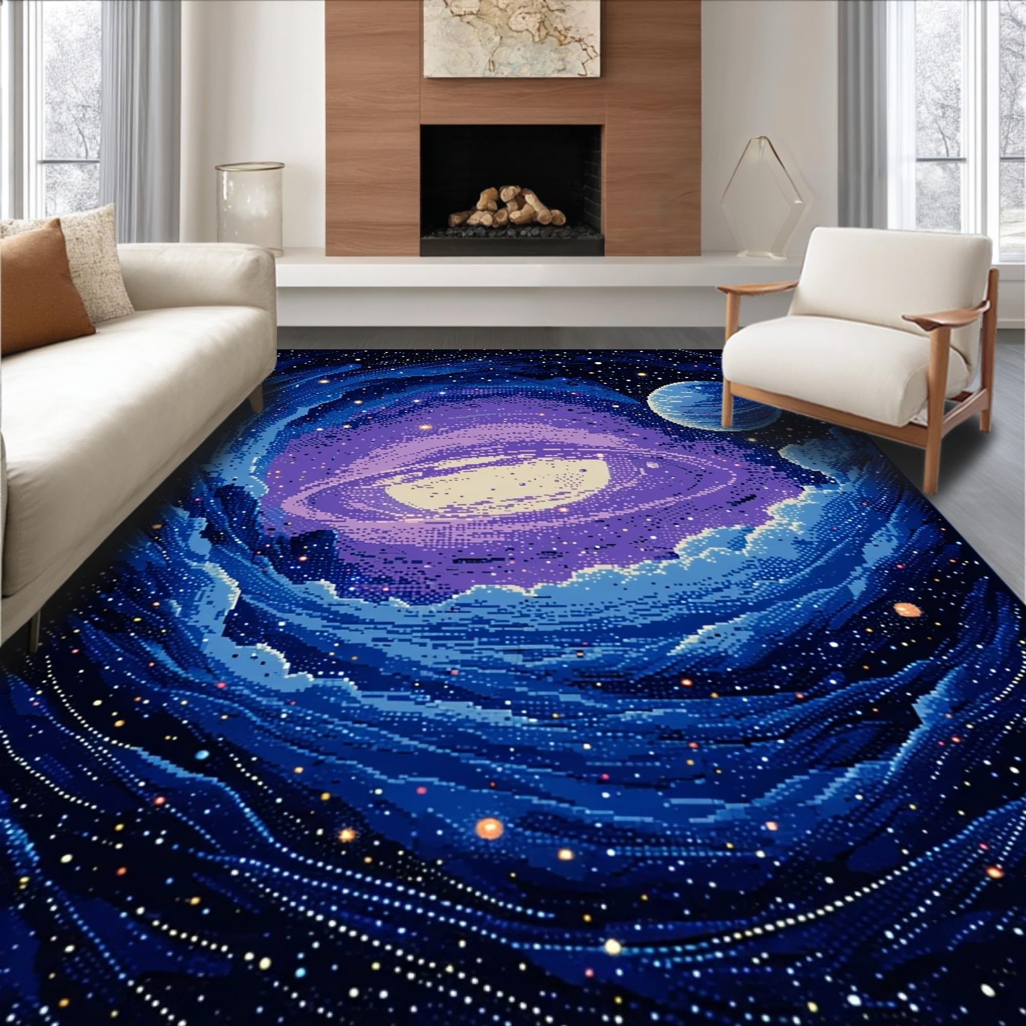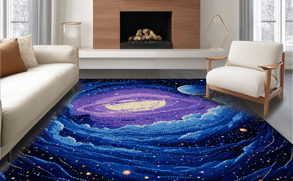 Ultra Soft Area Rug, Non Slip, Stain Resistant, Washable Area Rugs for Living Room, Bedroom, Charming Astronaut and Planet Fusion(Blue) Overview: