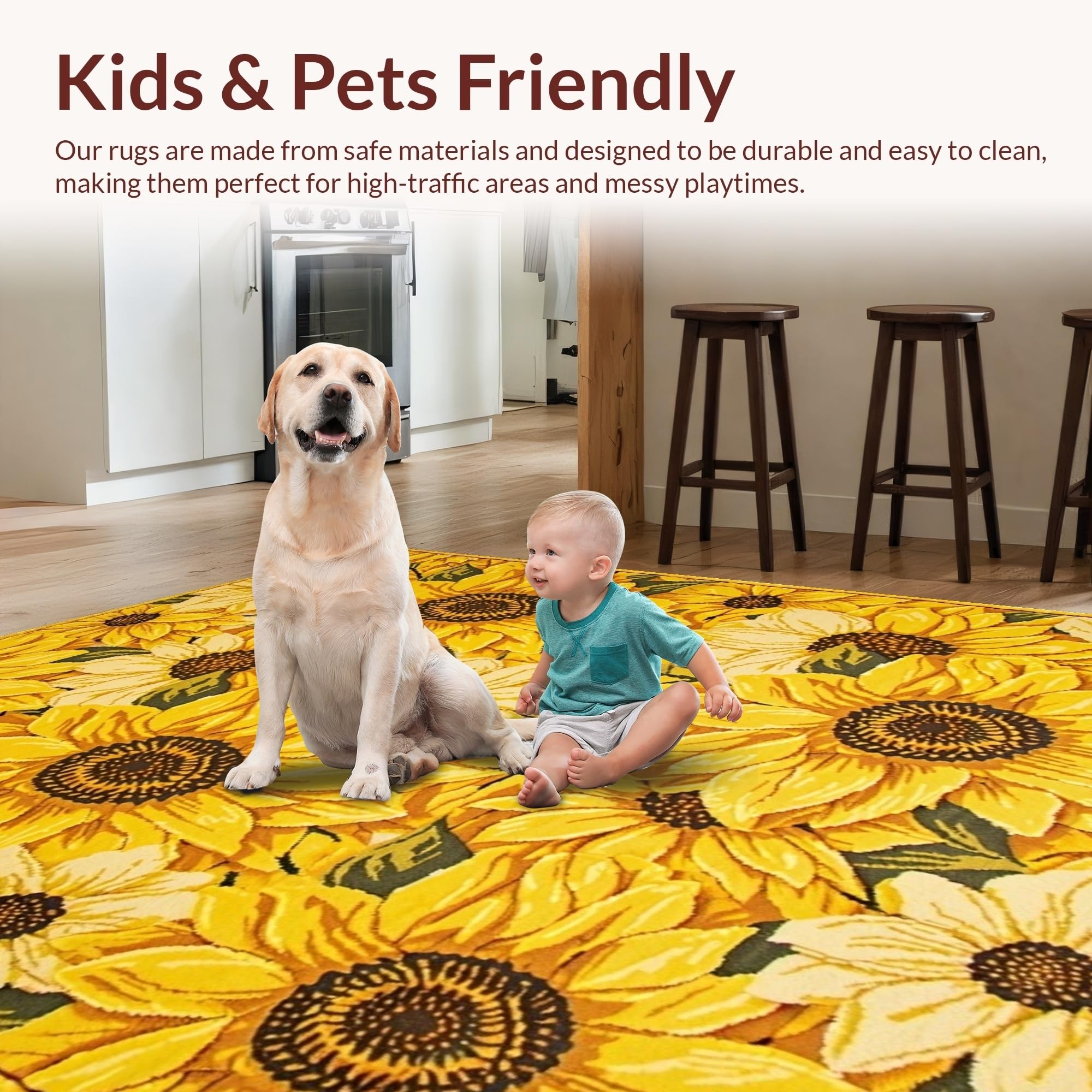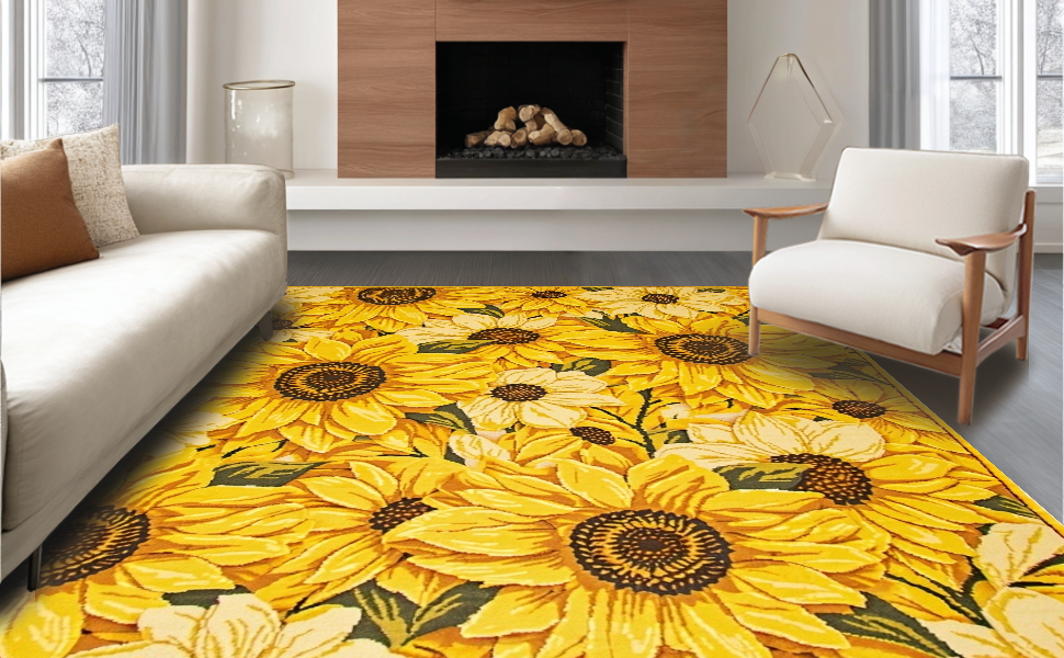 Ultra Soft Area Rug, Non Slip, Stain Resistant, Washable Area Rugs for Living Room, Bedroom, Charming Black and Yellow Fusion(Yellow) Overview: