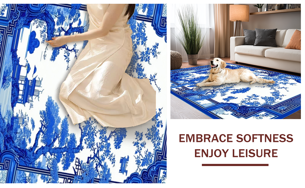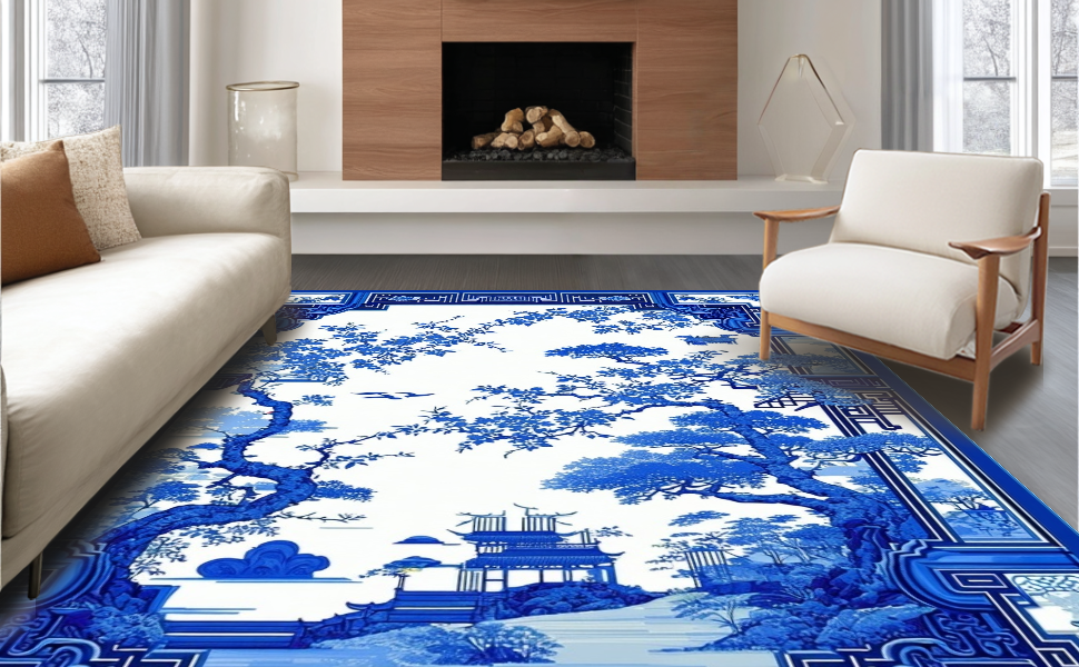 Ultra Soft Area Rug, Non Slip, Stain Resistant, Washable Area Rugs for Living Room, Bedroom, Charming Blue and Beige Medallion Style(Blue) Overview: