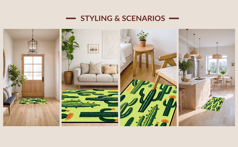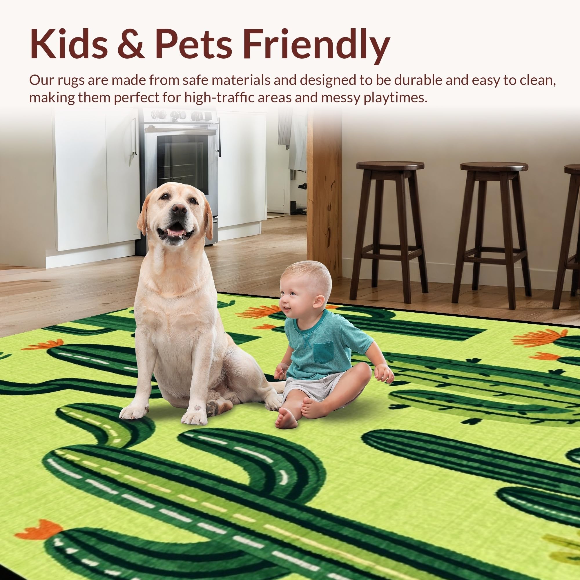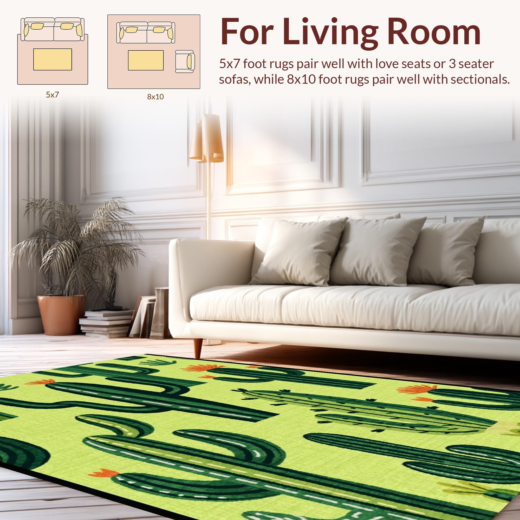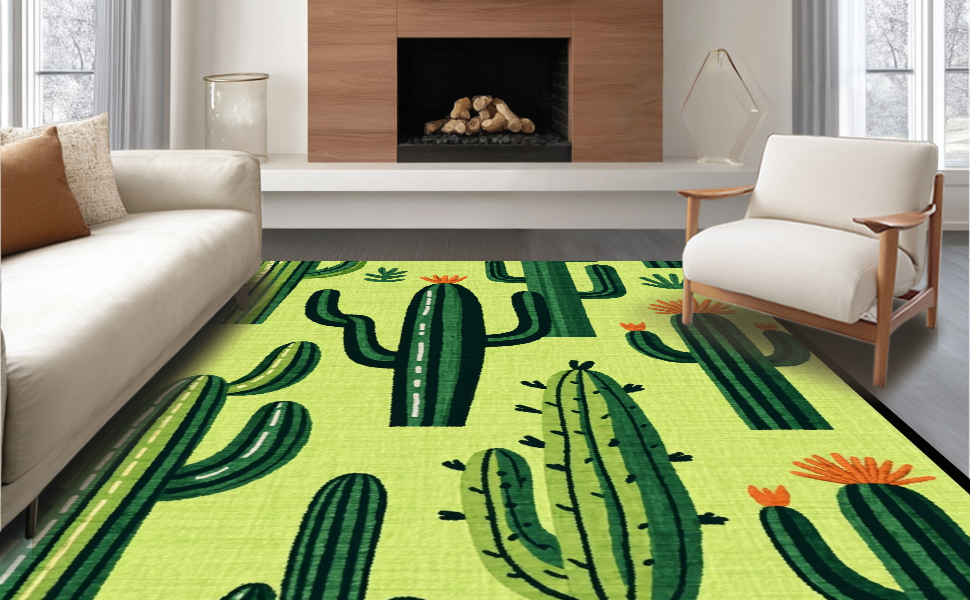 Ultra Soft Area Rug, Non Slip, Stain Resistant, Washable Area Rugs for Living Room, Bedroom, Charming Botanical Graphic Style(Green) Overview: