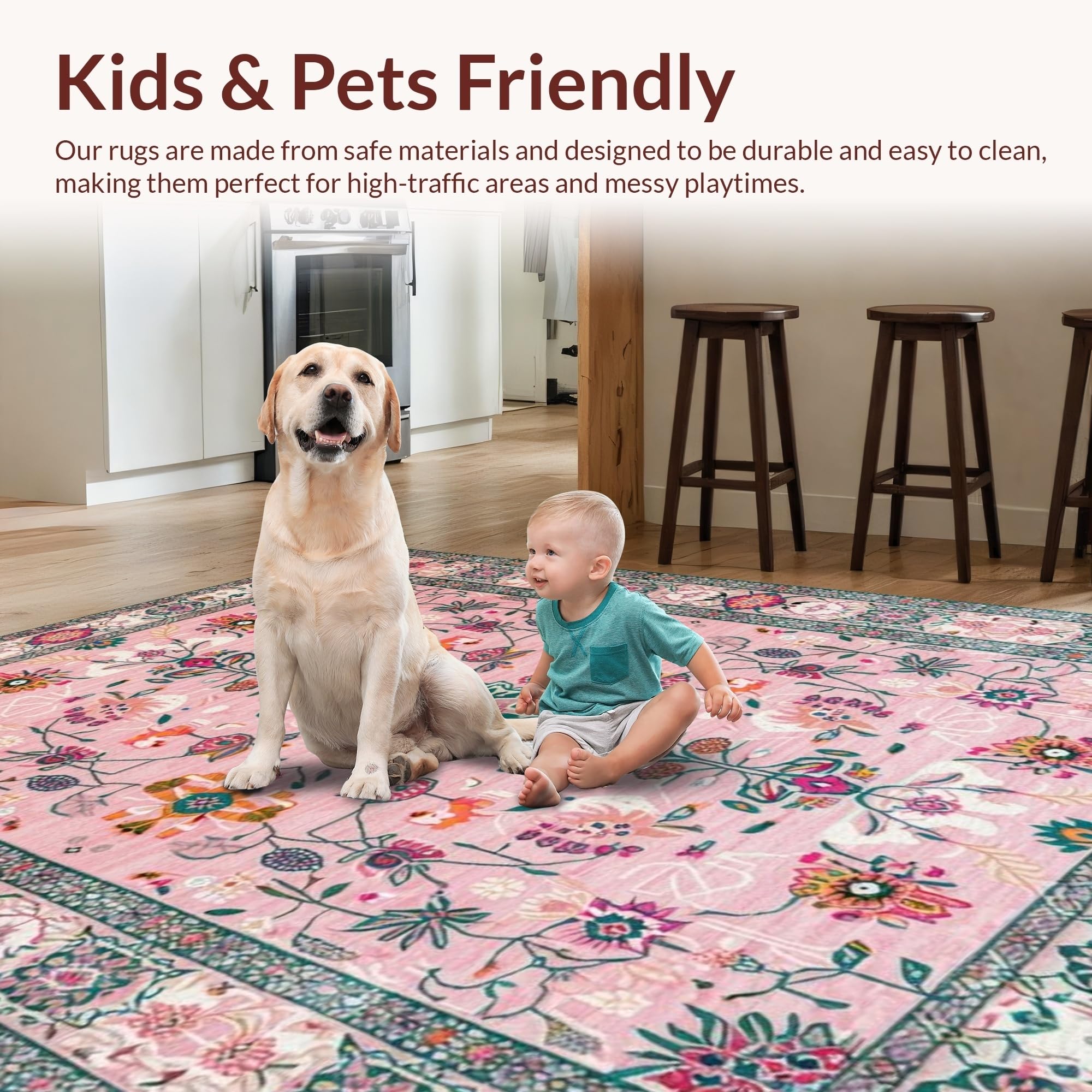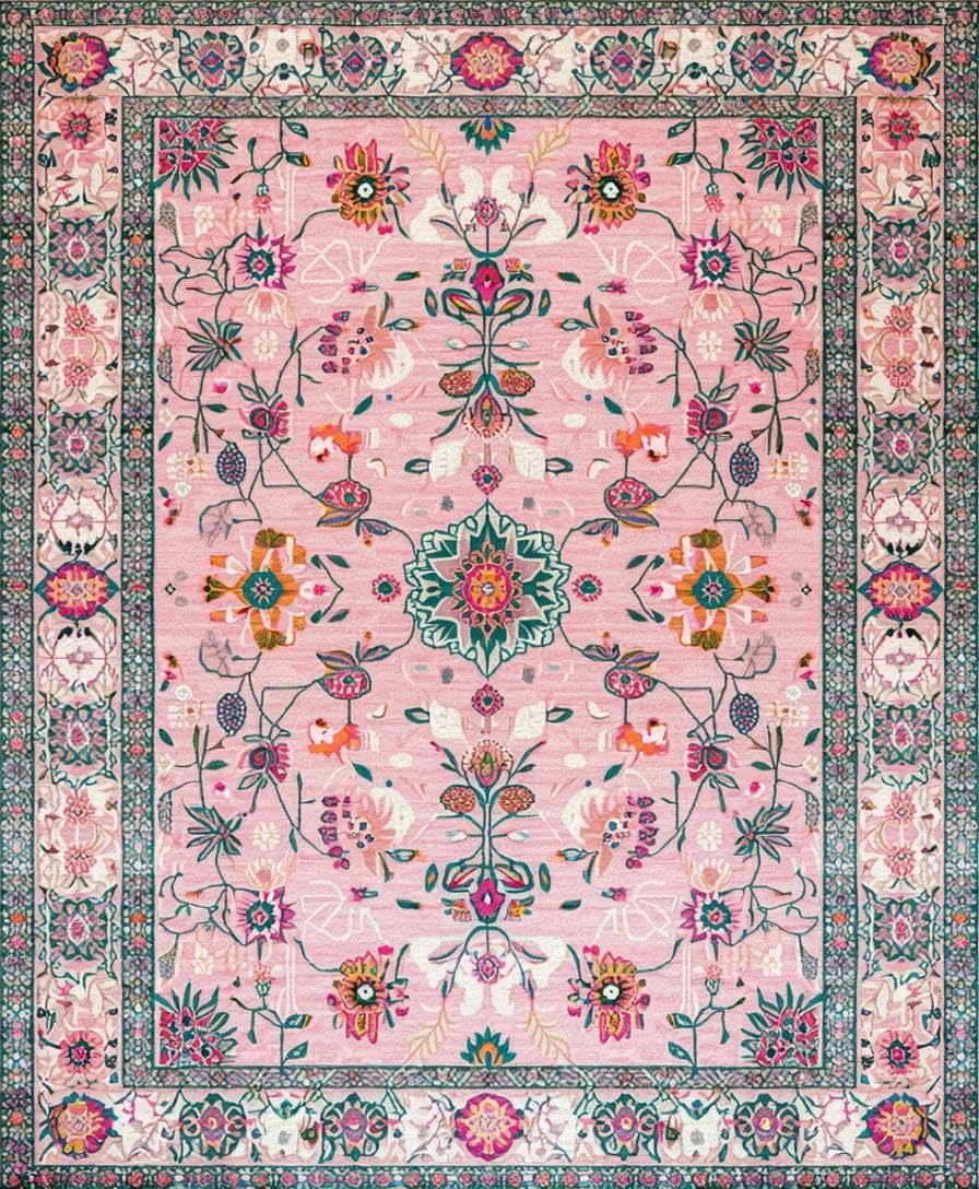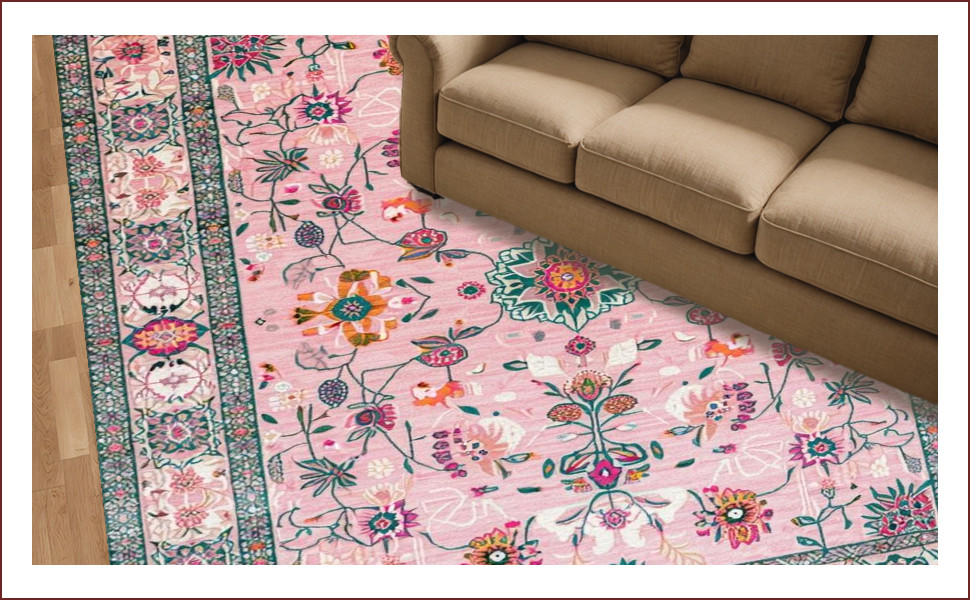 Ultra Soft Area Rug, Non Slip, Stain Resistant, Washable Area Rugs for Living Room, Bedroom, Charming Botanical Pastel Composition(Pink) Overview: