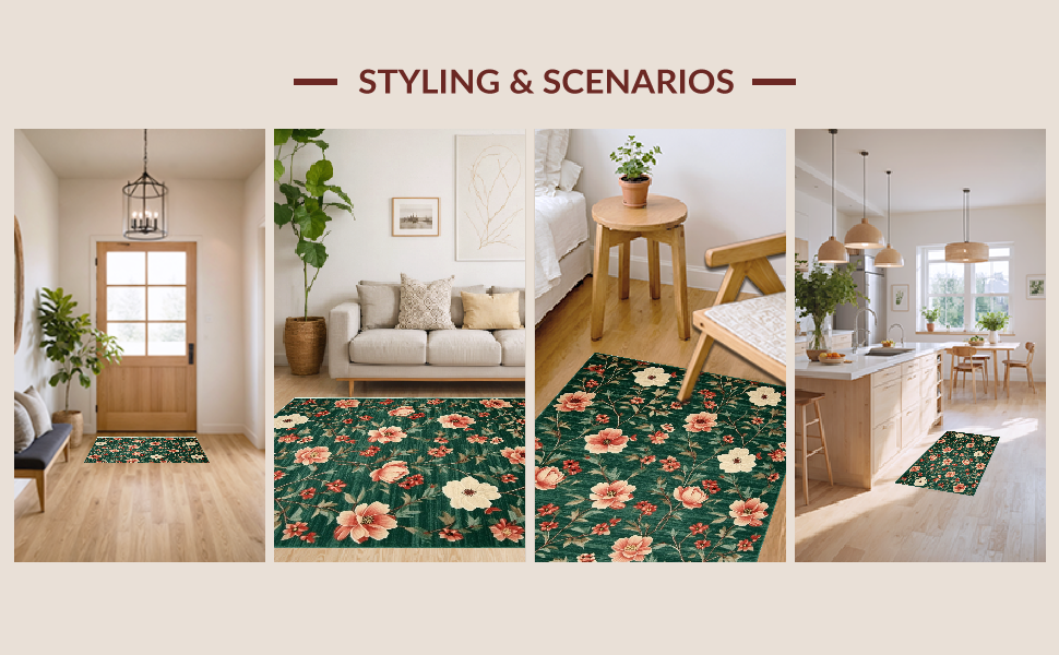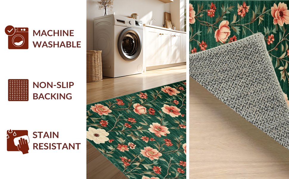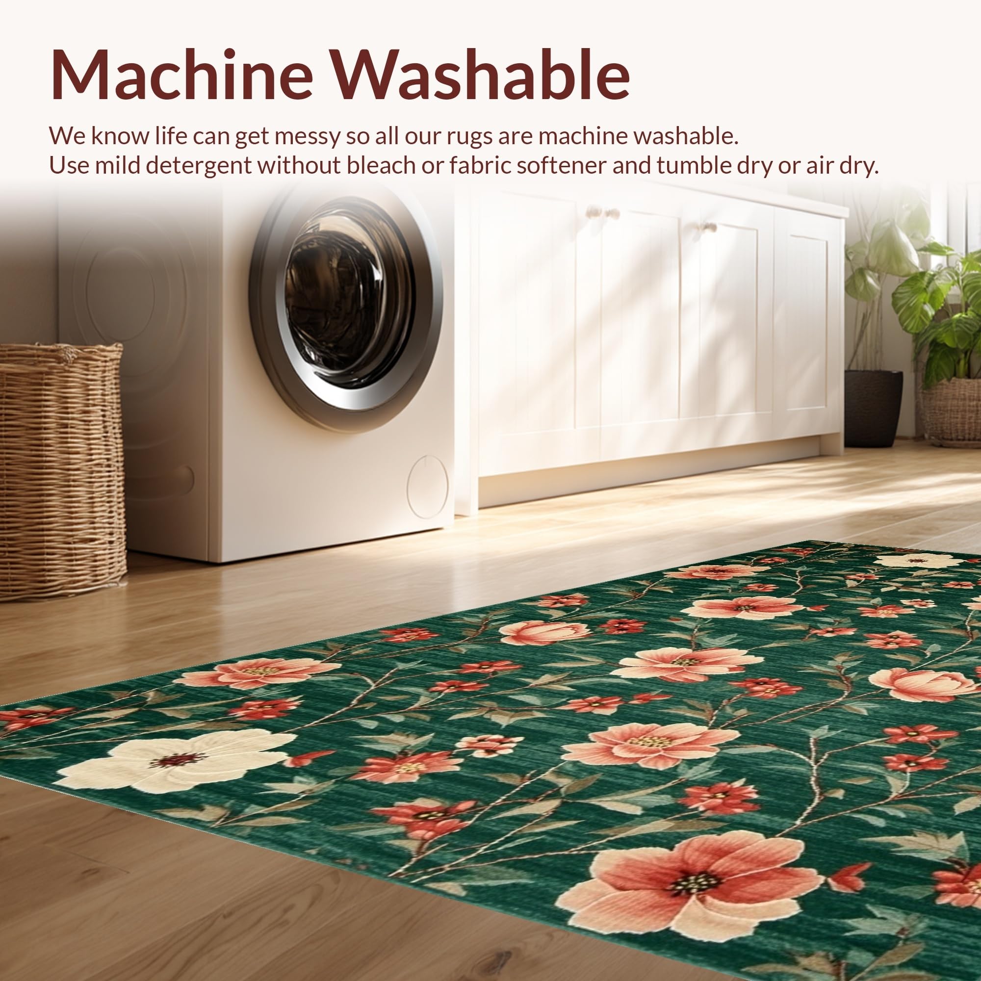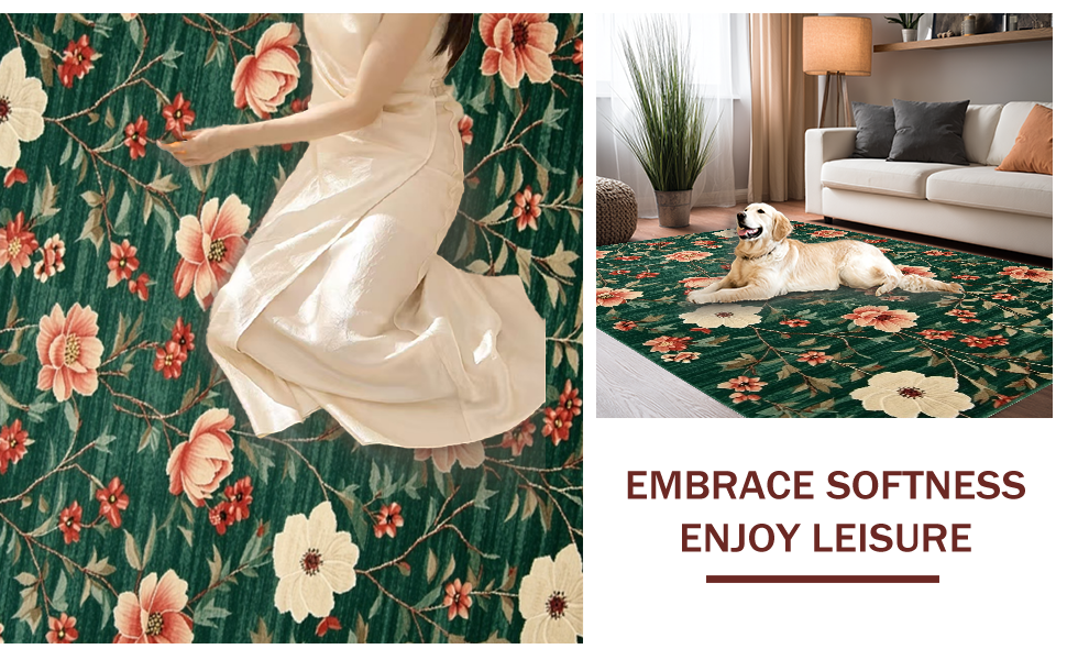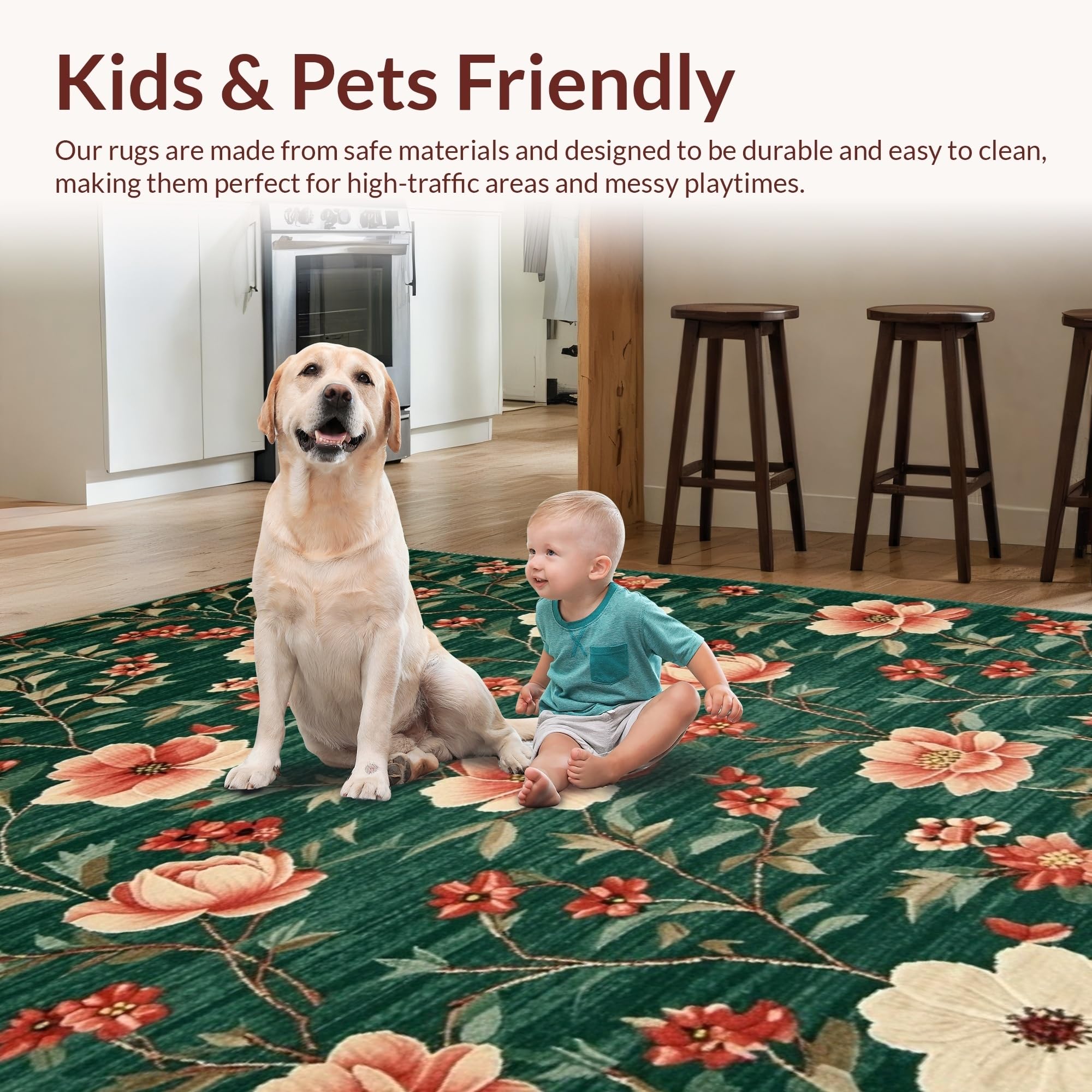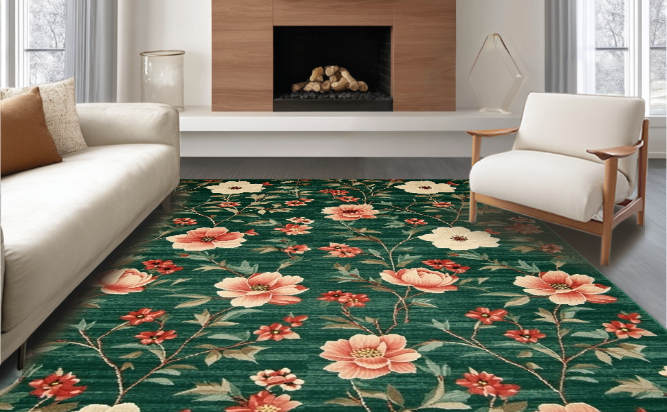 Ultra Soft Area Rug, Non Slip, Stain Resistant, Washable Area Rugs for Living Room, Bedroom, Charming Botanical Patterned Aesthetic(Green) Overview: