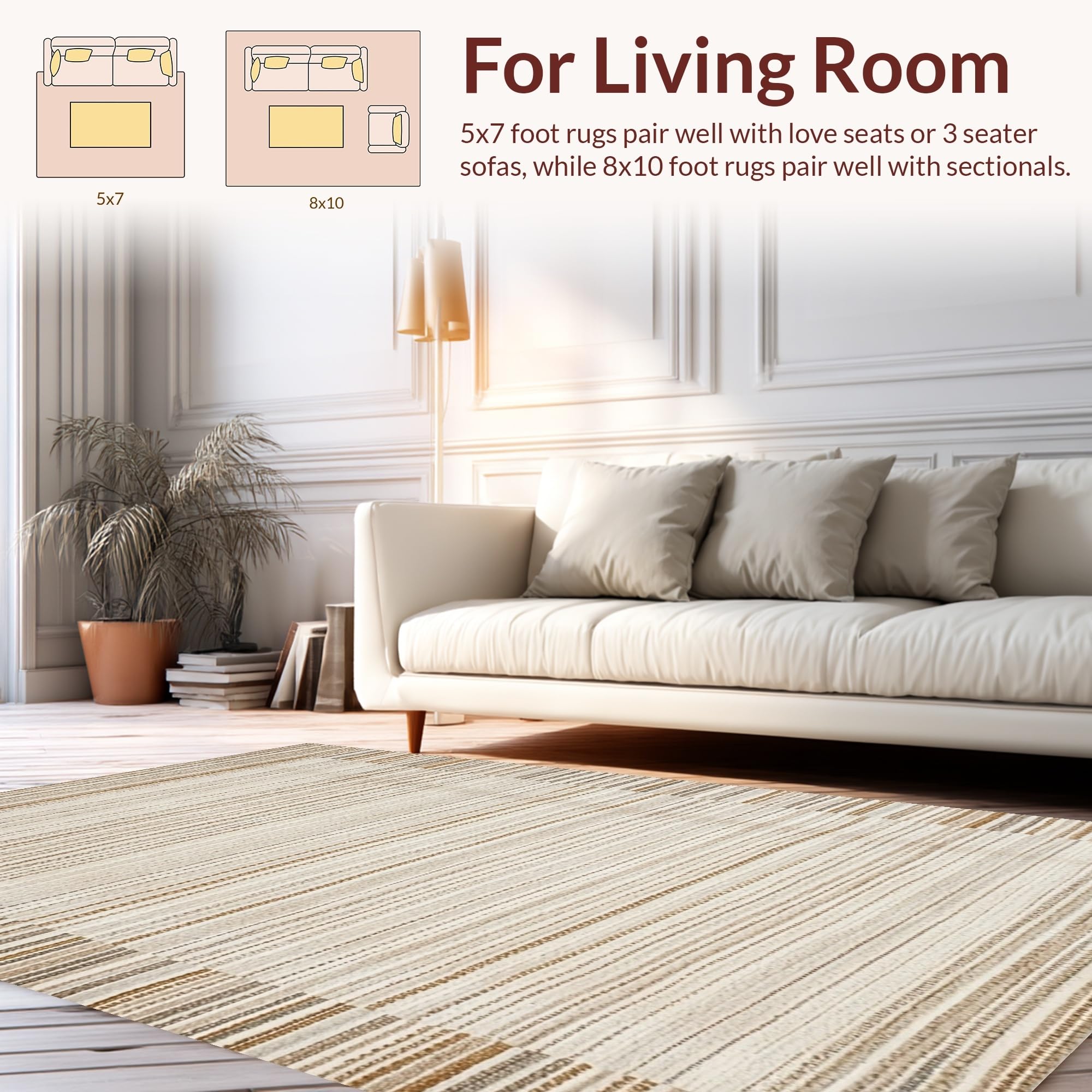 Ultra Soft Area Rug, Non Slip, Stain Resistant, Washable Area Rugs for Living Room, Bedroom, Charming Braided Natural Aesthetic(Beige) Overview: