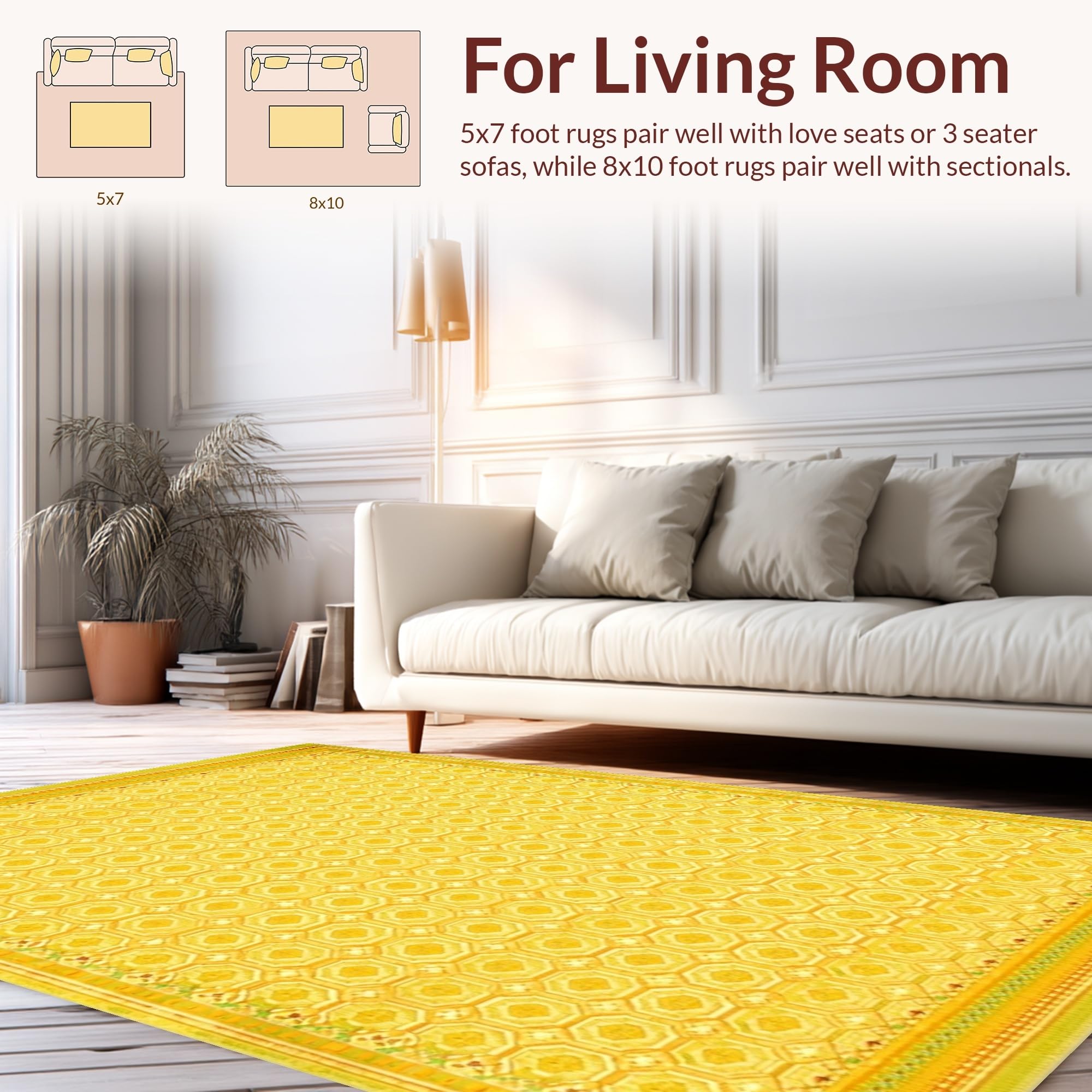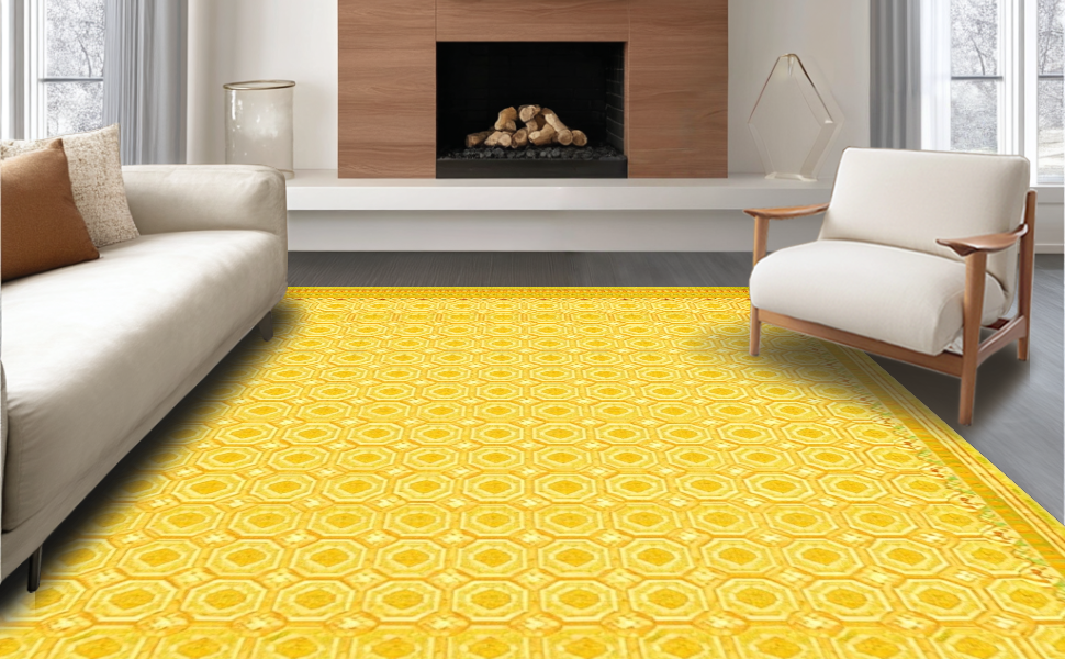 Ultra Soft Area Rug, Non Slip, Stain Resistant, Washable Area Rugs for Living Room, Bedroom, Charming Brightly-hued Floral Arrangement(Yellow) Overview: