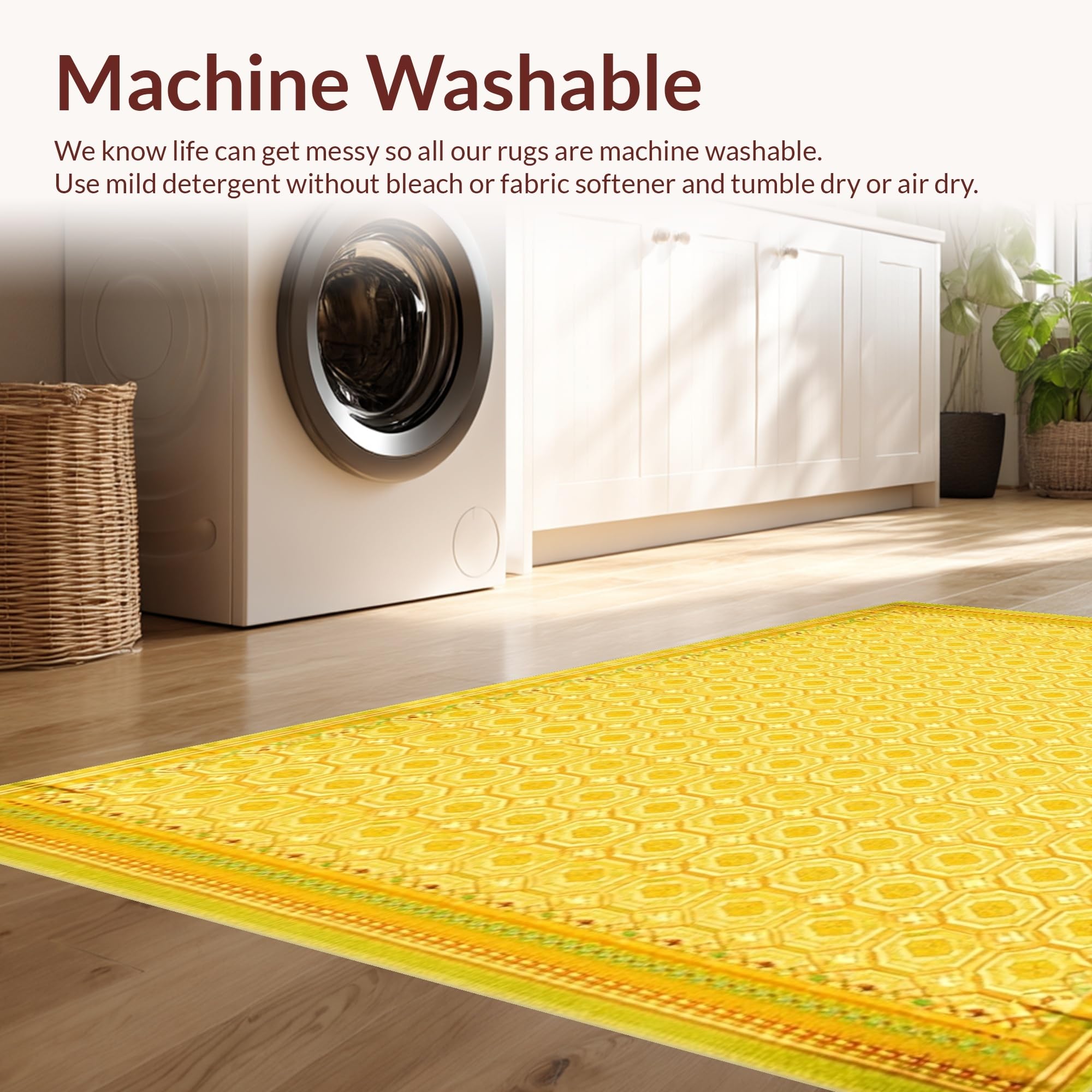 - Machine Washable: Our rugs can be easily thrown in the wash machine.