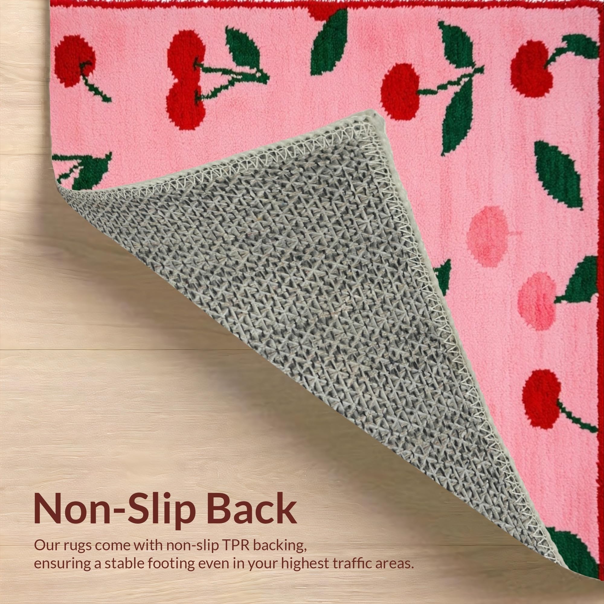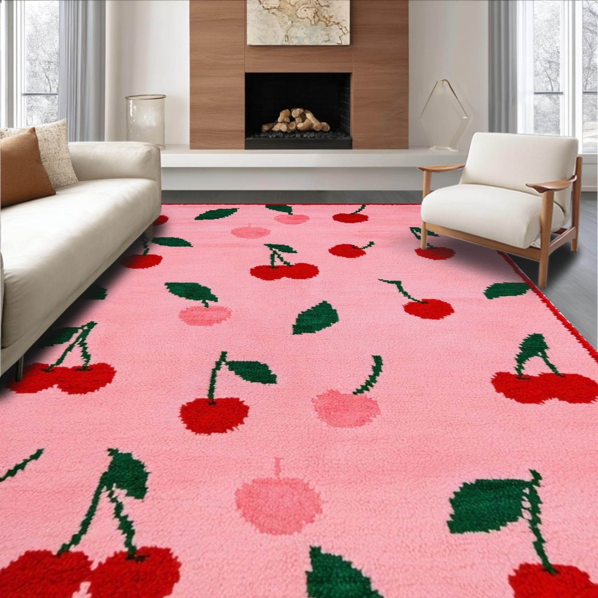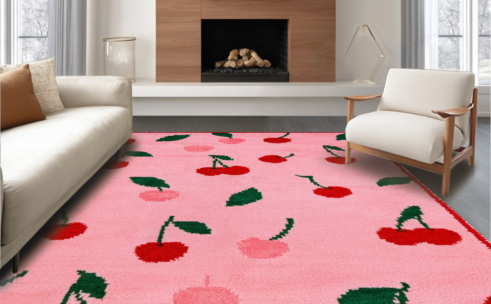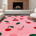 Ultra Soft Area Rug, Non Slip, Stain Resistant, Washable Area Rugs for Living Room, Bedroom, Charming Cartoon Cherry Illustration(Pink) Overview:
