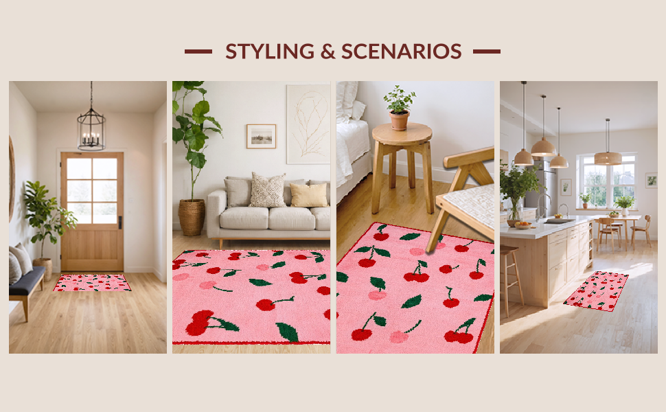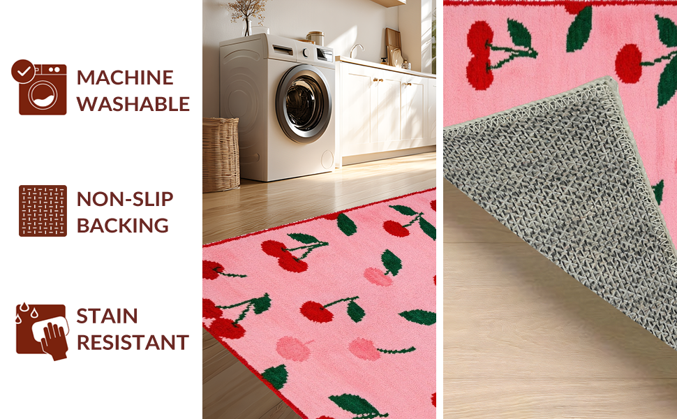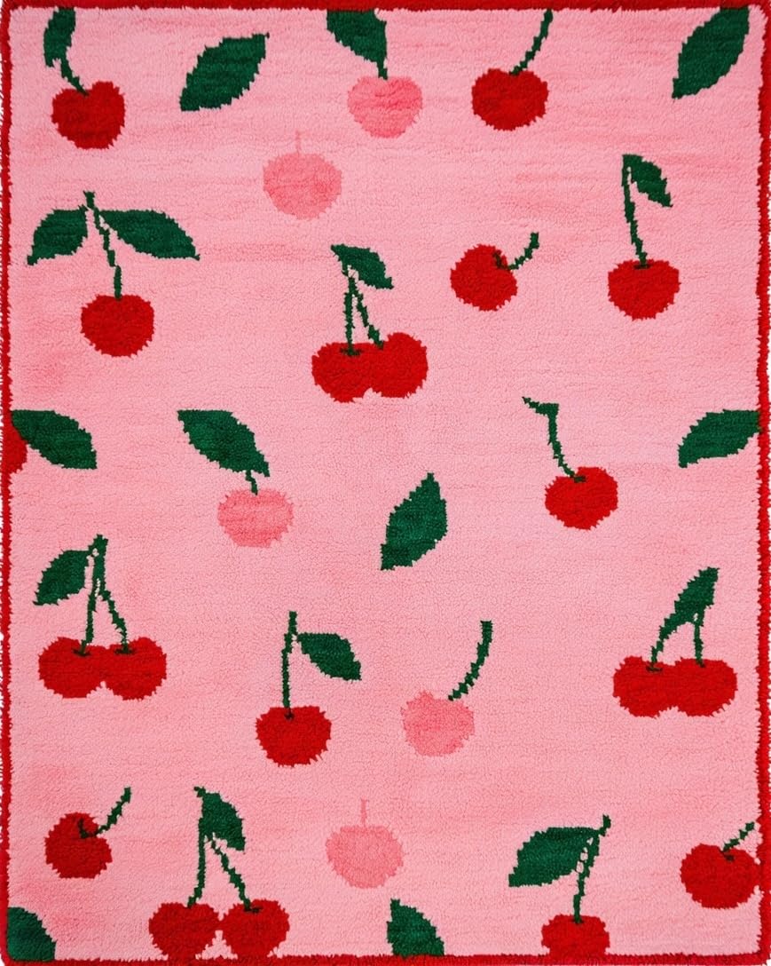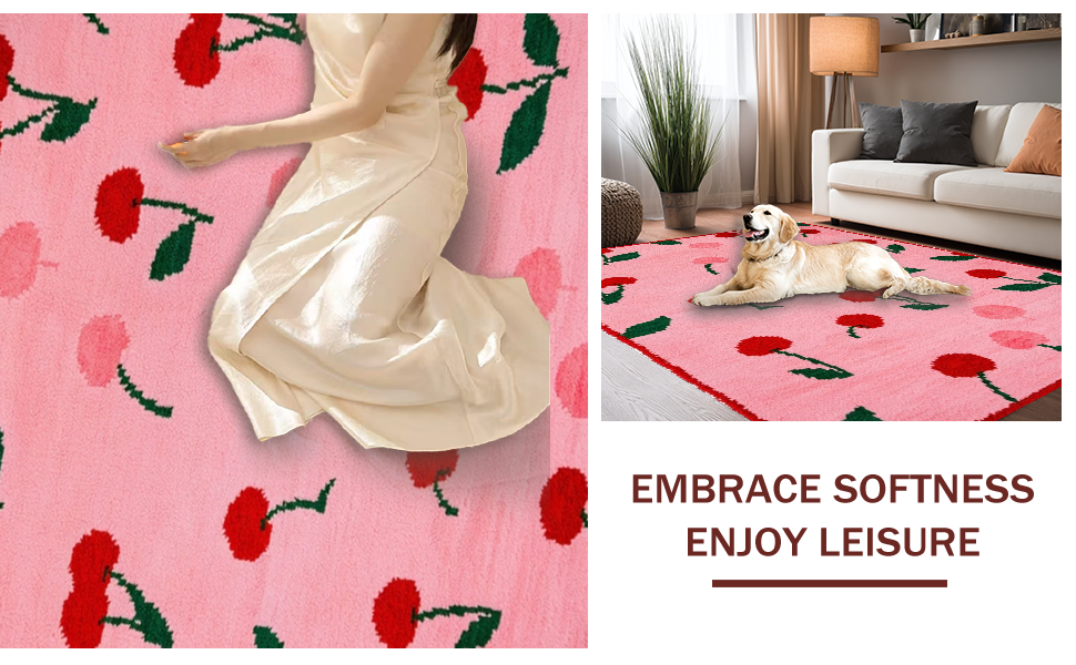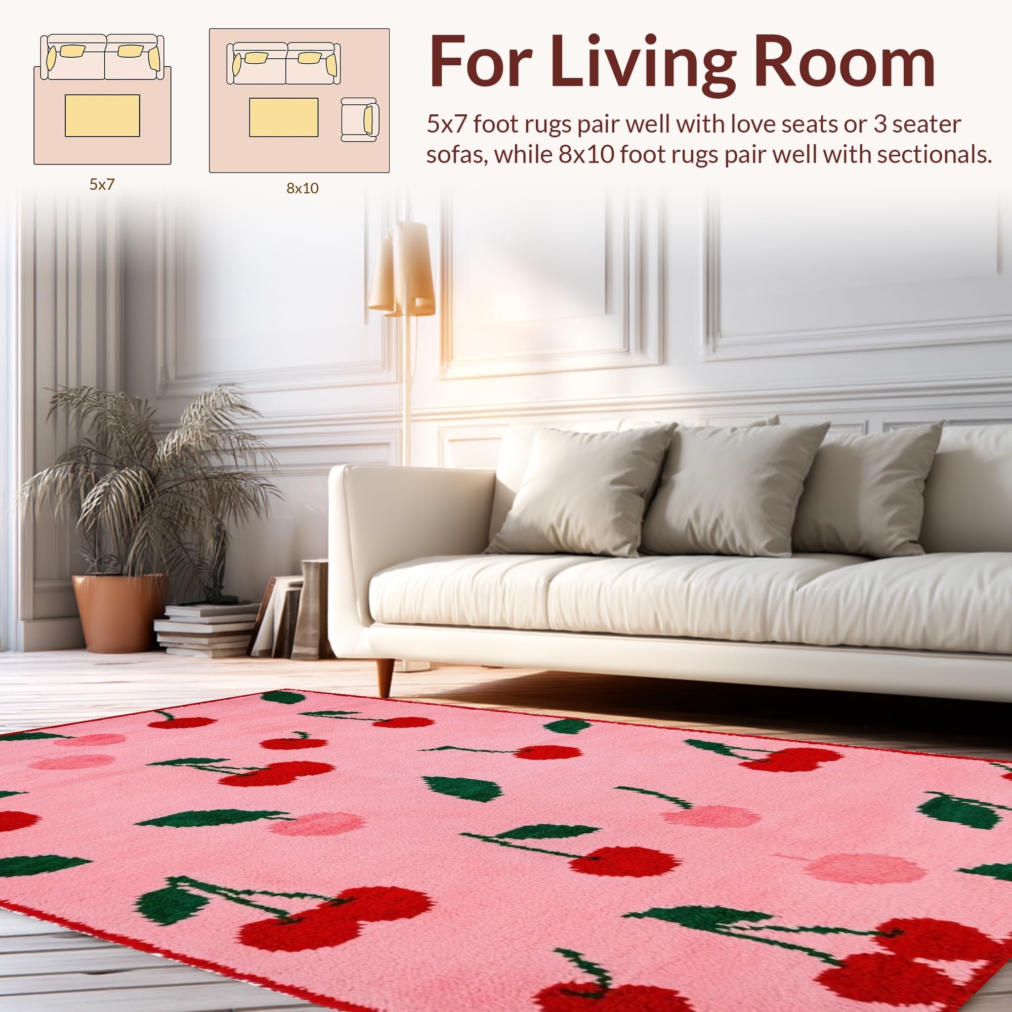 Ultra Soft Area Rug, Non Slip, Stain Resistant, Washable Area Rugs for Living Room, Bedroom, Charming Cartoon Cherry Illustration(Pink) Overview: