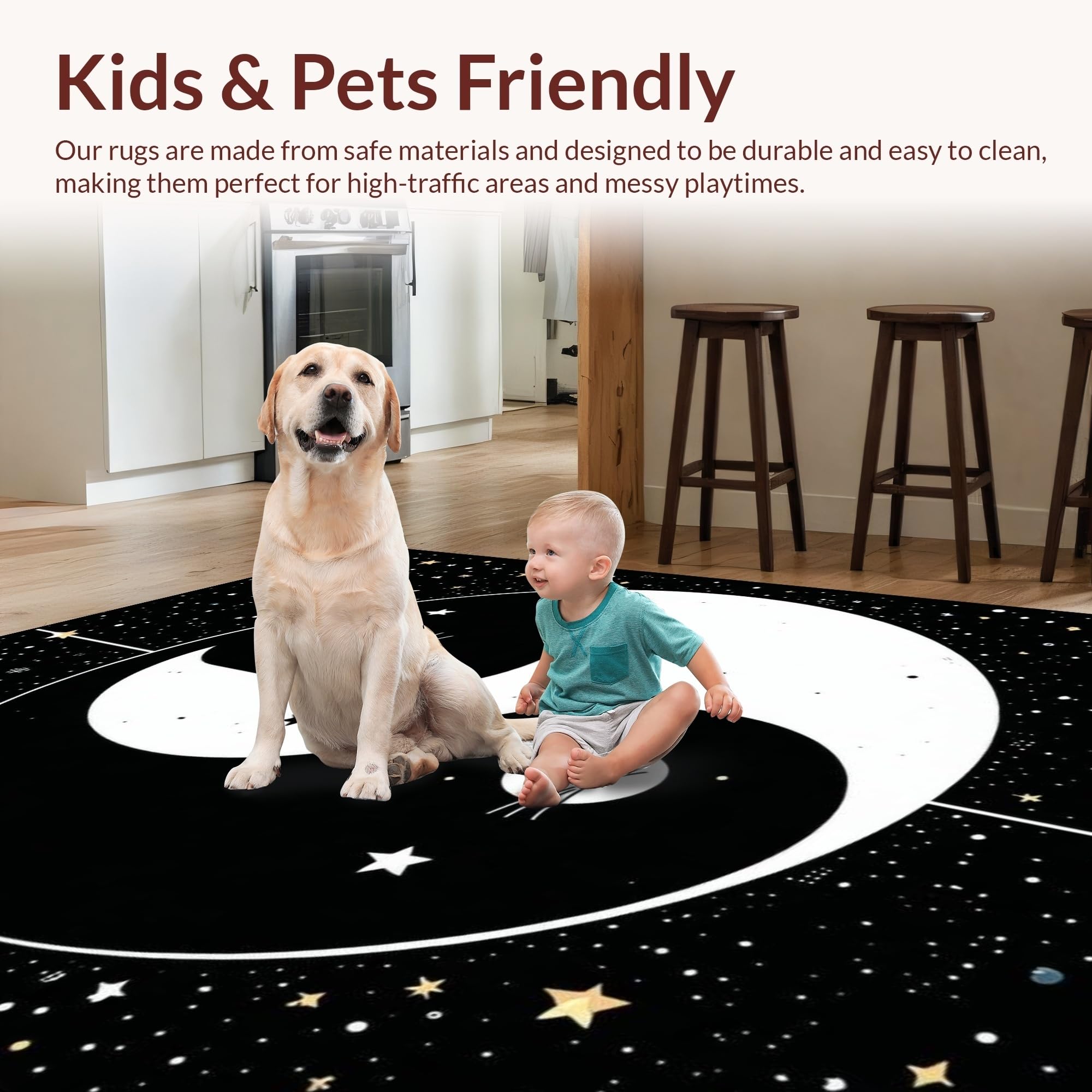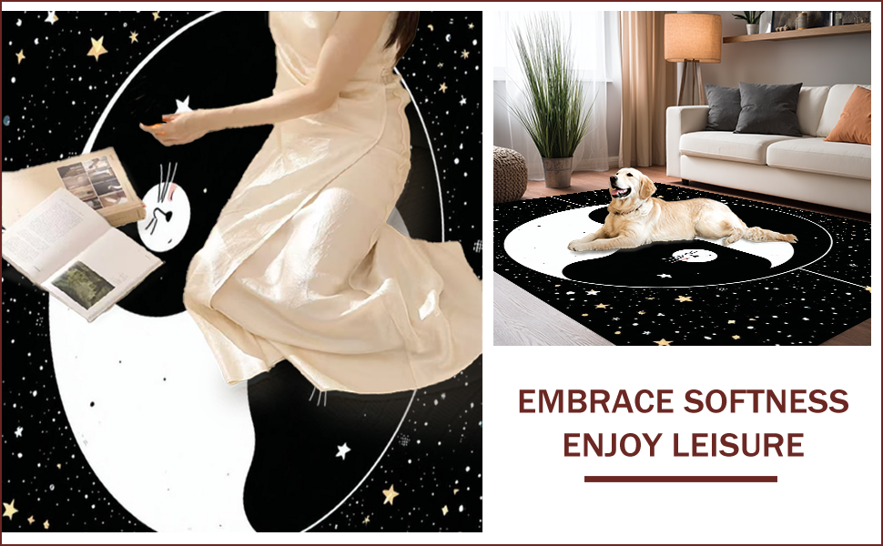 Ultra Soft Area Rug, Non Slip, Stain Resistant, Washable Area Rugs for Living Room, Bedroom, Charming Cat-Inspired Yin Yang Design(Black) Overview: